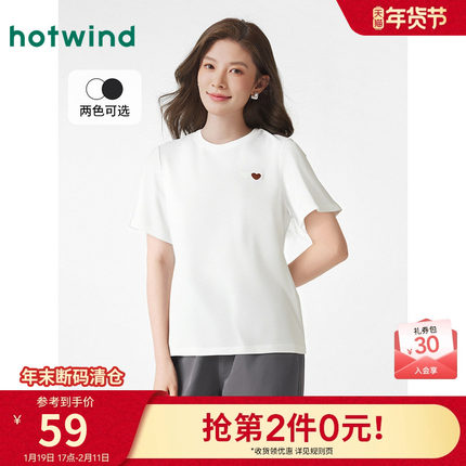 热风女士白色短袖T恤上衣2025年夏季新款爱心刺绣短T黑色宽松T恤