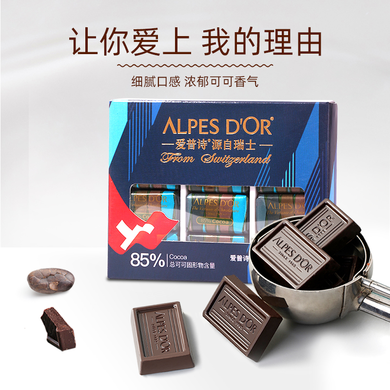 黑巧克力爱普诗官方瑞士进口纯可可脂微苦纯黑74%零食小盒装50g