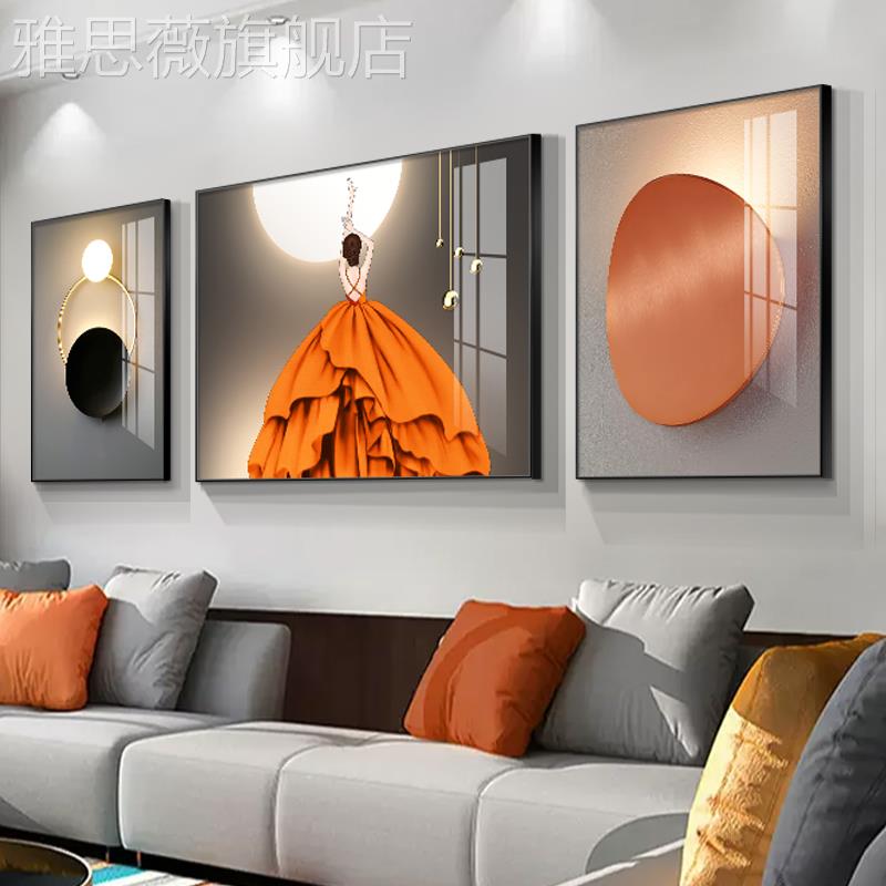 网红现代简约客厅画装饰高画奢大气三联墙画人物壁沙发背档景轻墙