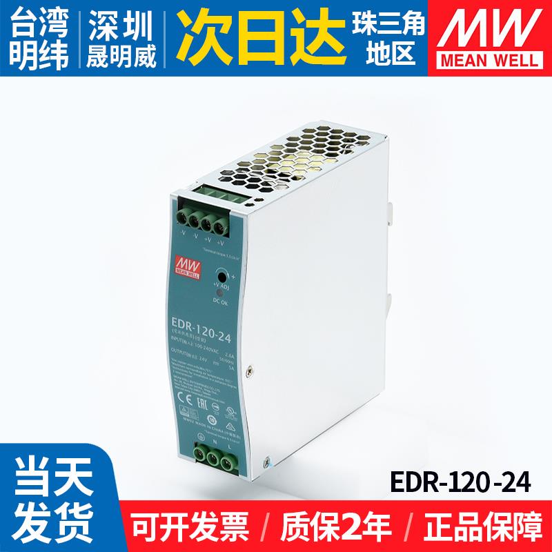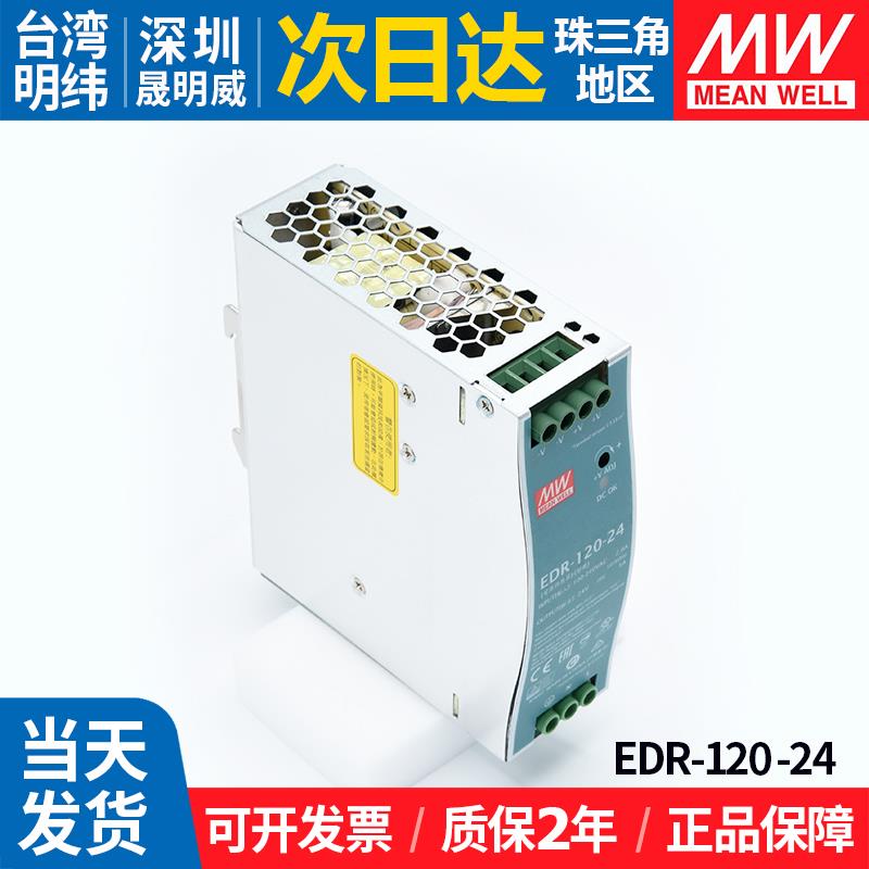 EDR-120-24台湾明纬24V开关电源120W导轨工业5A直流变压器220转