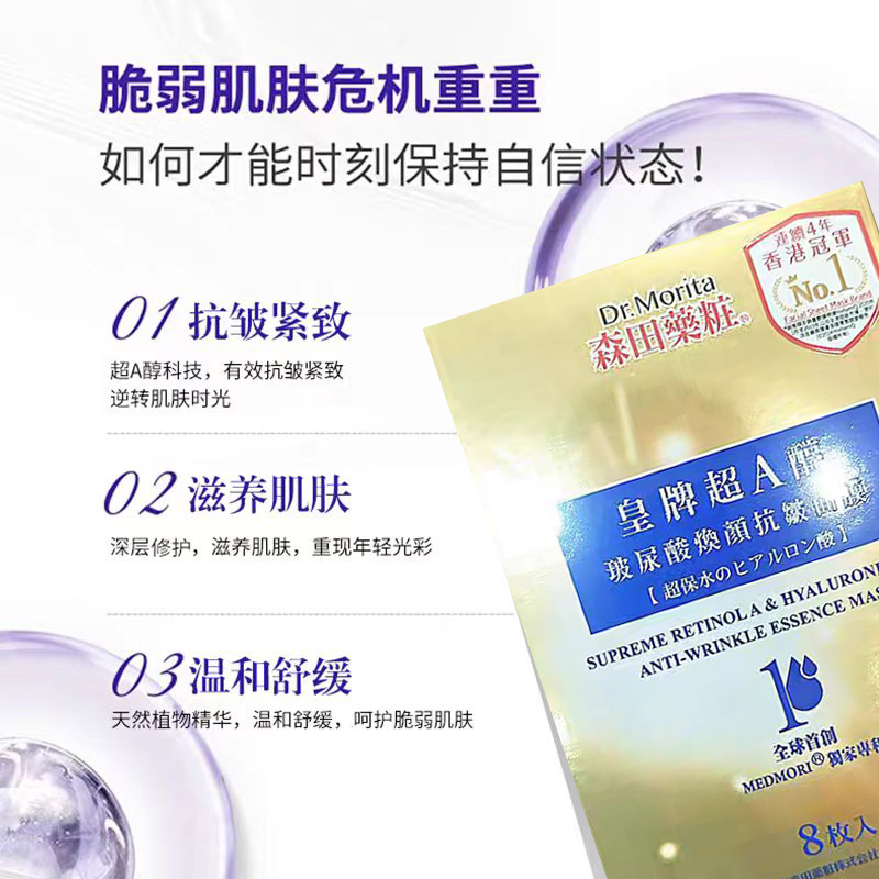 香港购 万宁森田药妆蜂王乳蛋白紧致提升面膜贴10片 补水保湿亮白