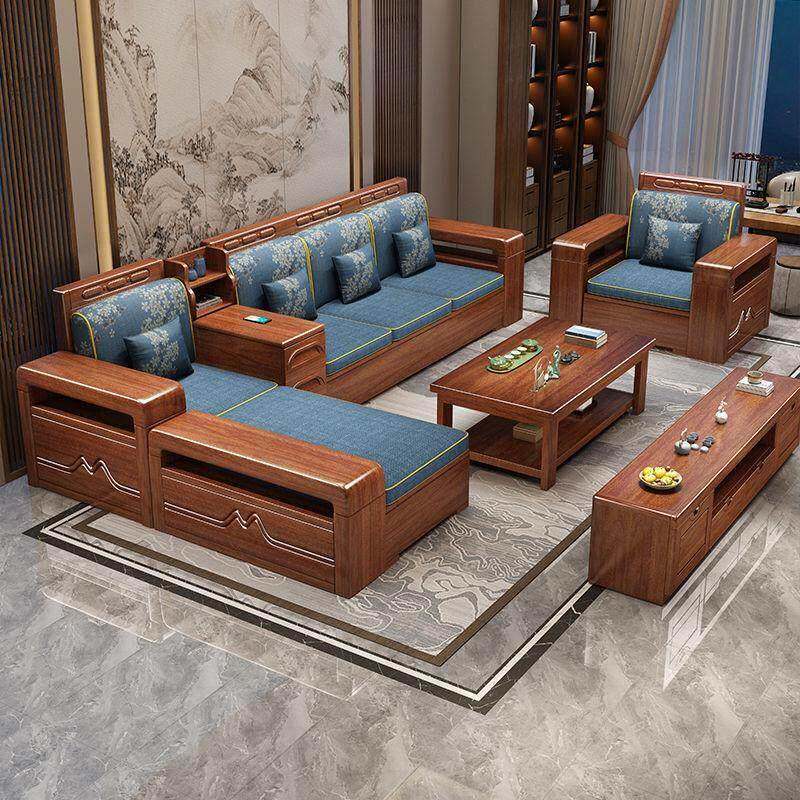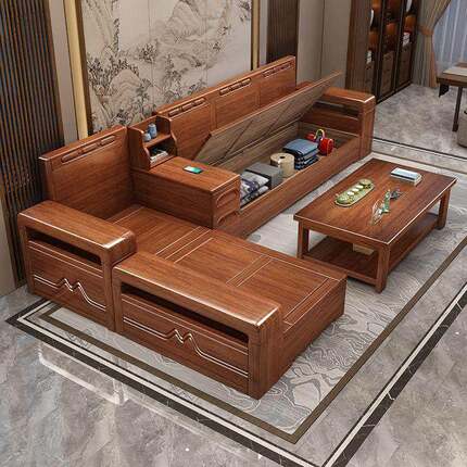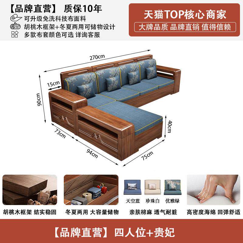 桃木全实木沙发组29847合夏中胡式冬两用储物布木质客厅艺大小户