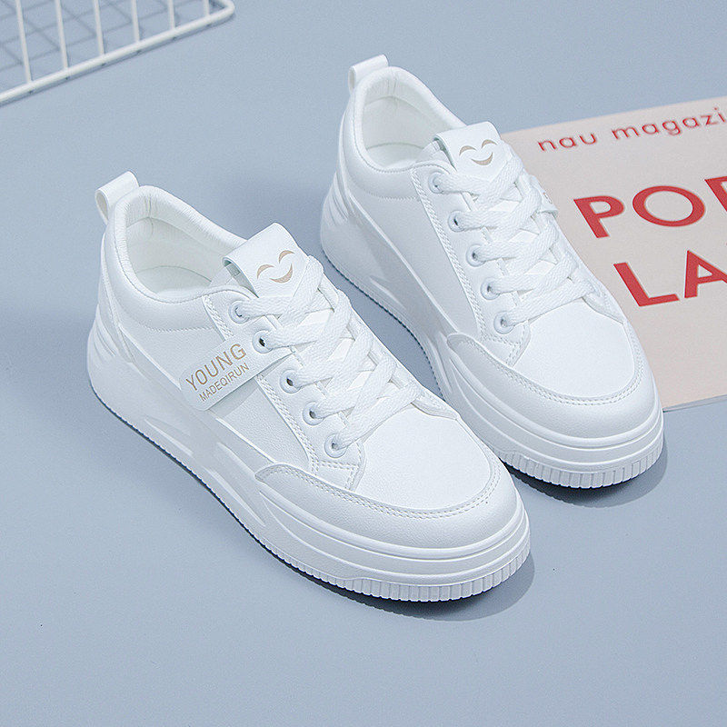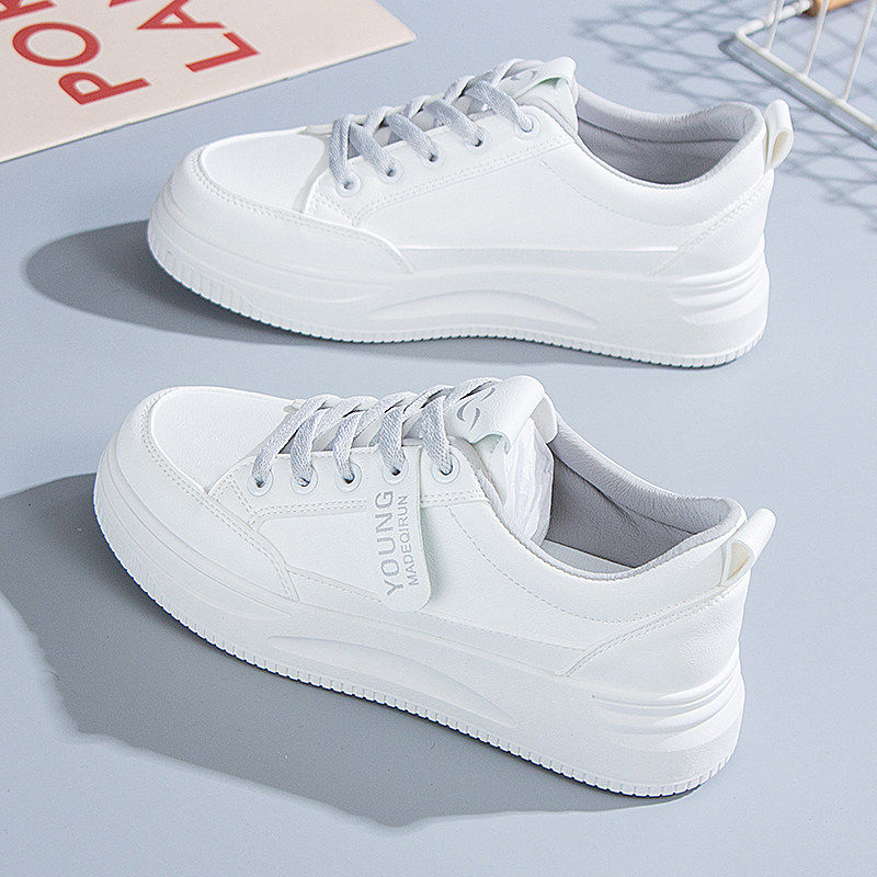 意尔康品牌断码真皮小白鞋女春秋季新款百搭板鞋厚底时尚休闲运动