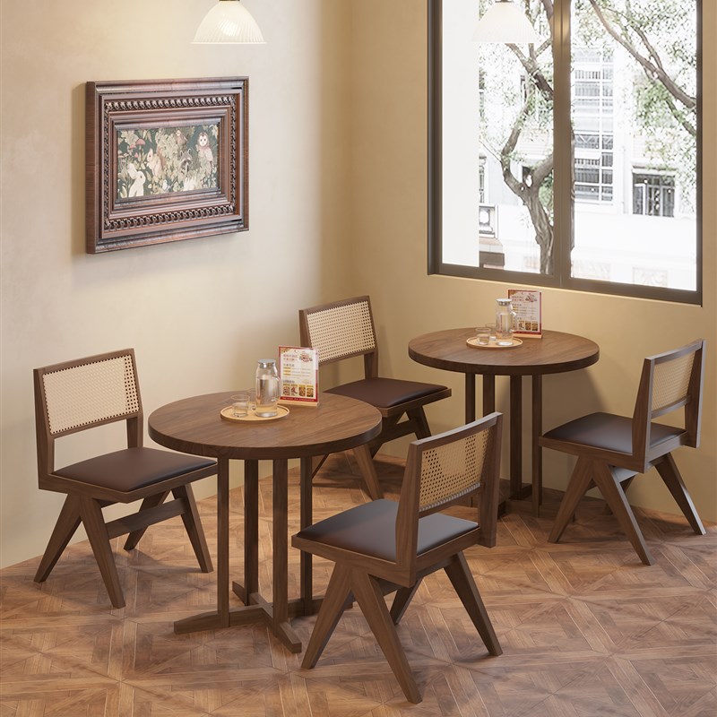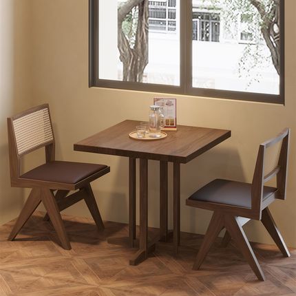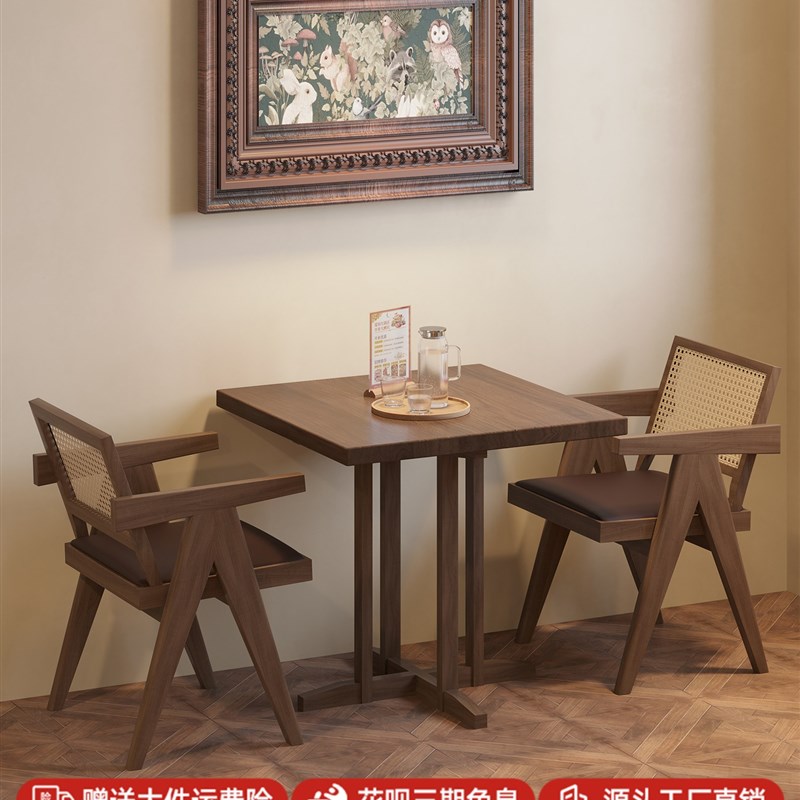 全实木咖啡馆小方桌商用覆古酒吧餐厅餐桌椅组合饭店桌子1092