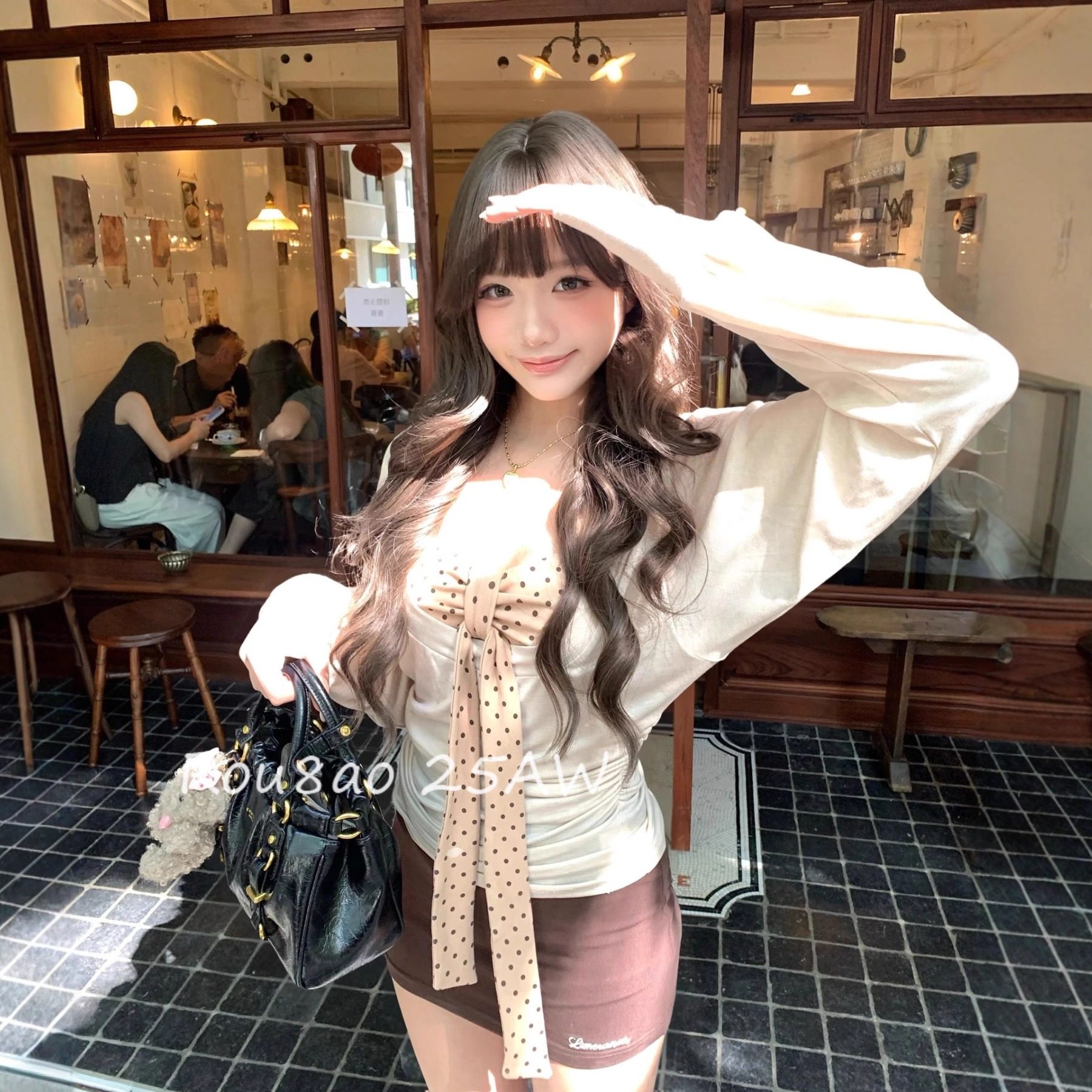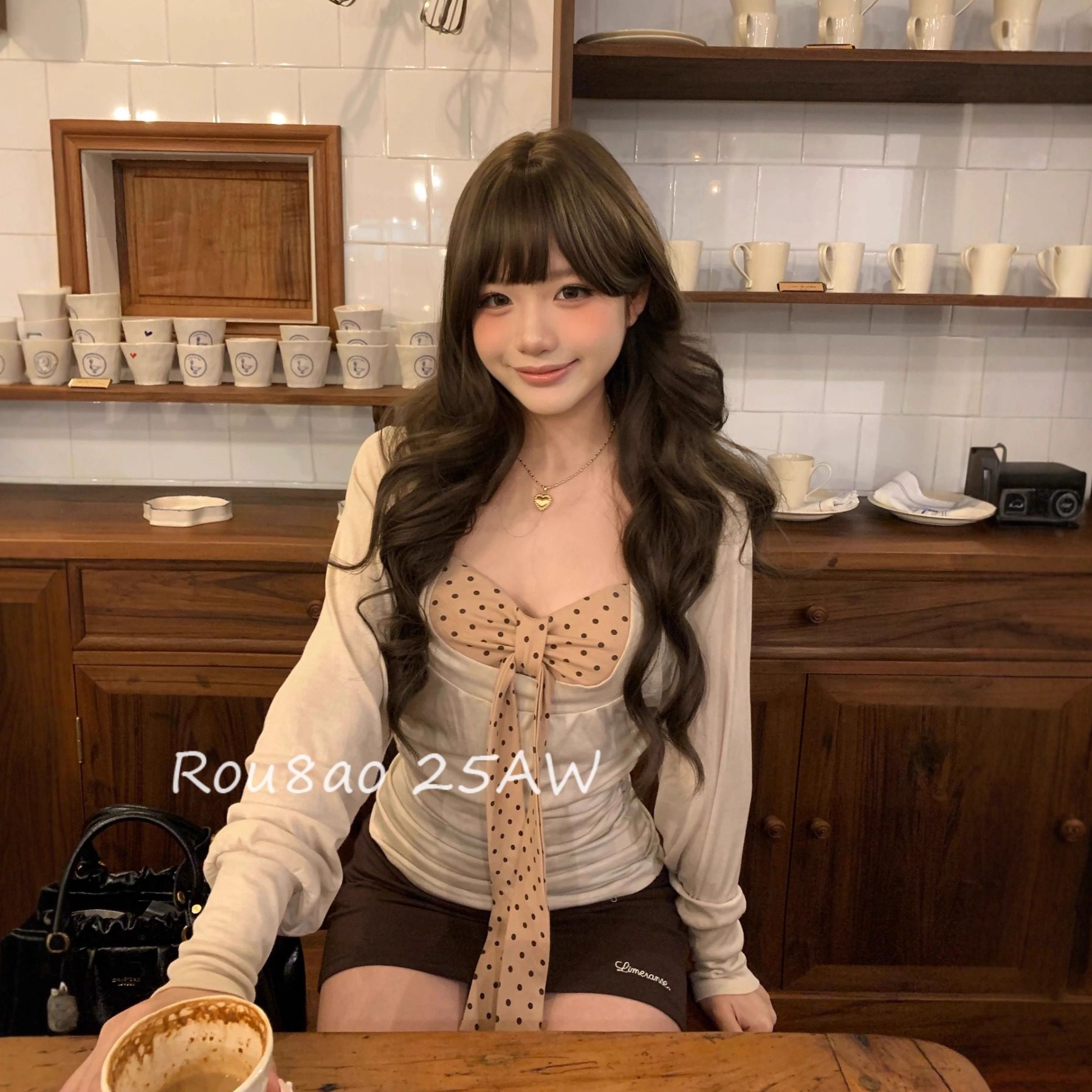 Rou8ao微胖大码女装韩系设计感假两件针织衫女秋冬显瘦打底衫上衣