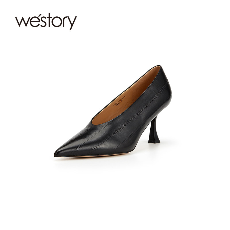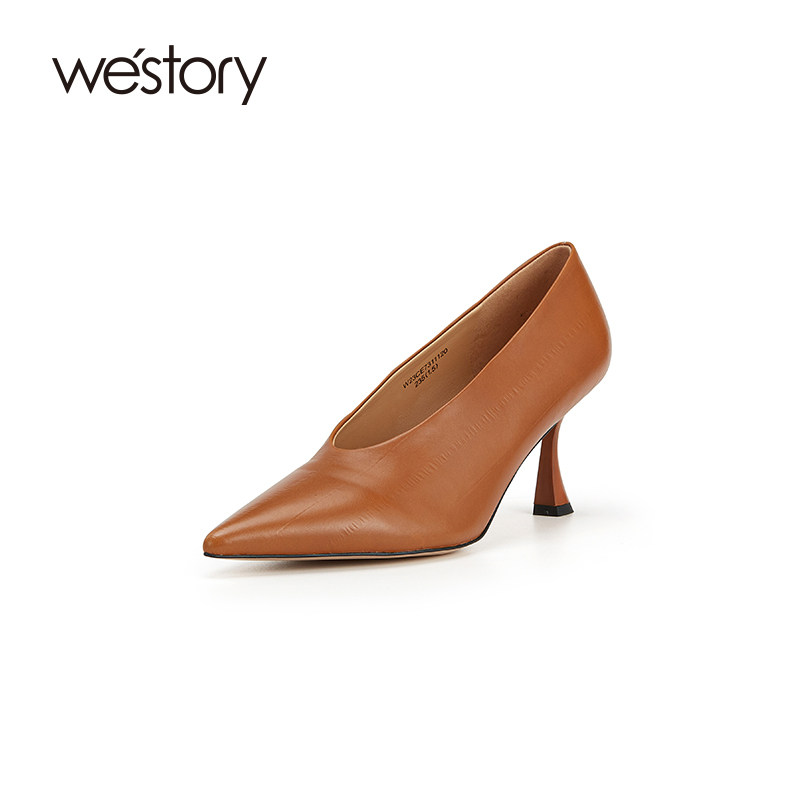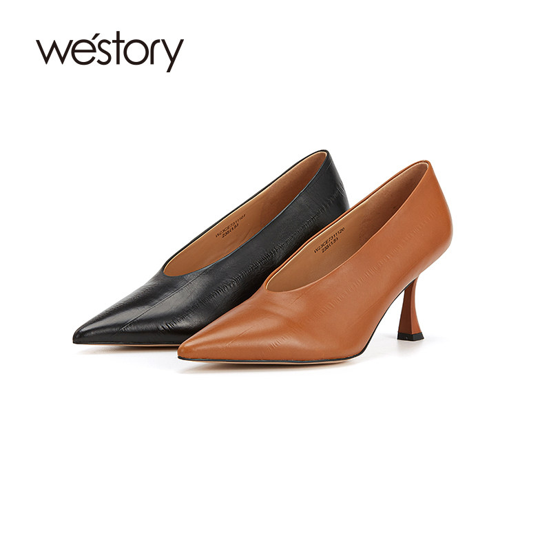 westory尖头气质舒适真皮高跟鞋