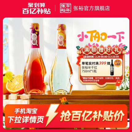 【百补】张裕小萄微气泡甜红甜白桃红葡萄酒低度微醺酒275ml*2