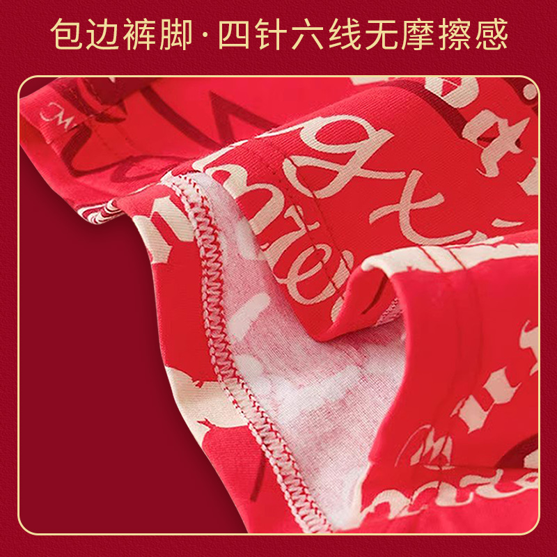 内裤男纯棉本命年大红色四角短裤衩大码透气2025蛇年新款平角底裤