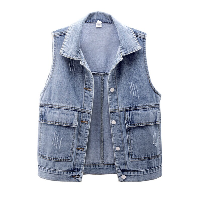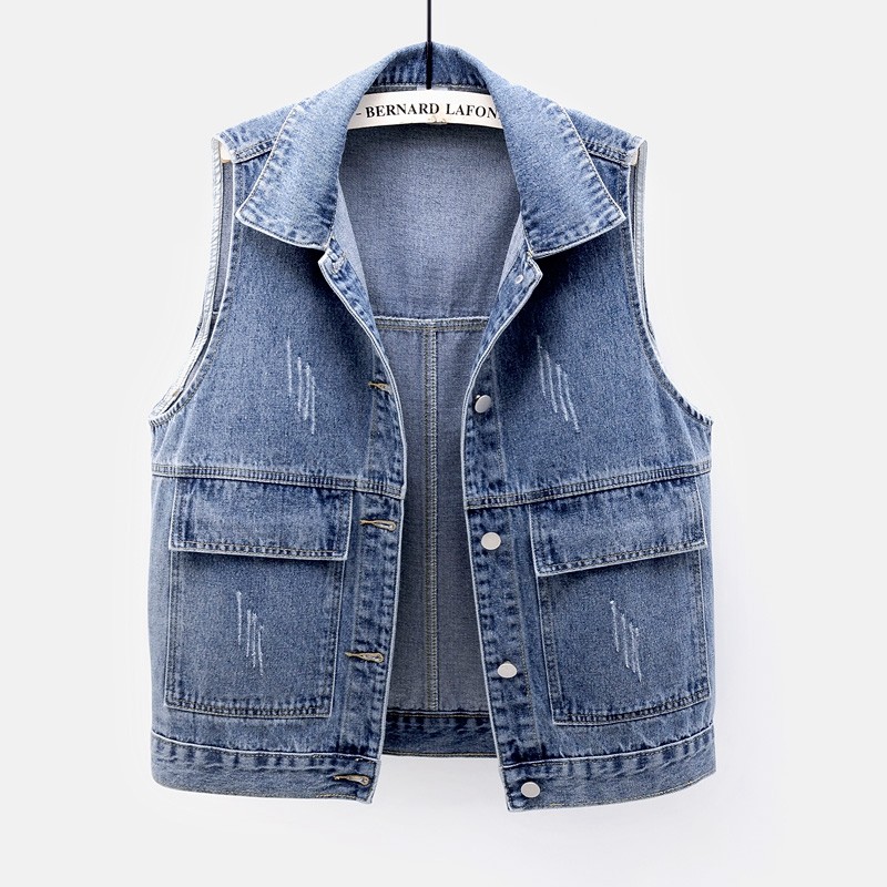 2025春夏新品牛仔马甲女短款简约宽松大口袋背心百搭无袖上衣开衫
