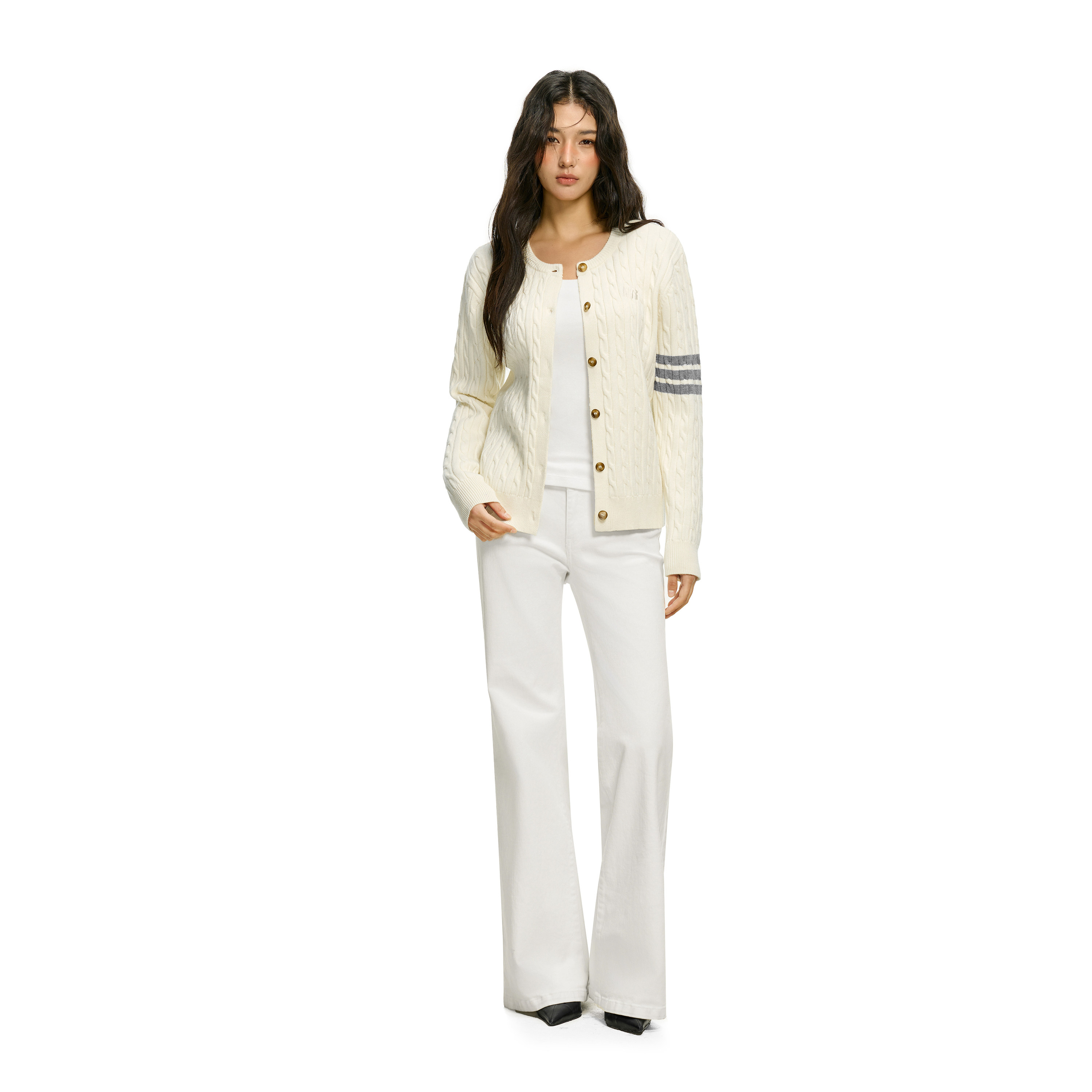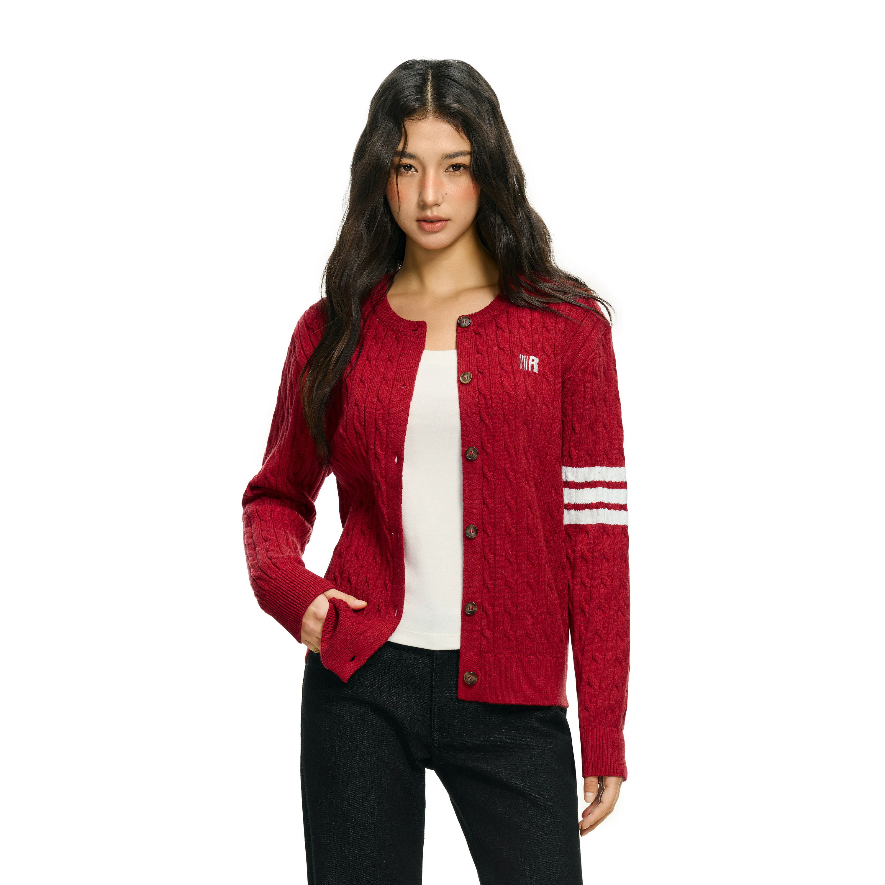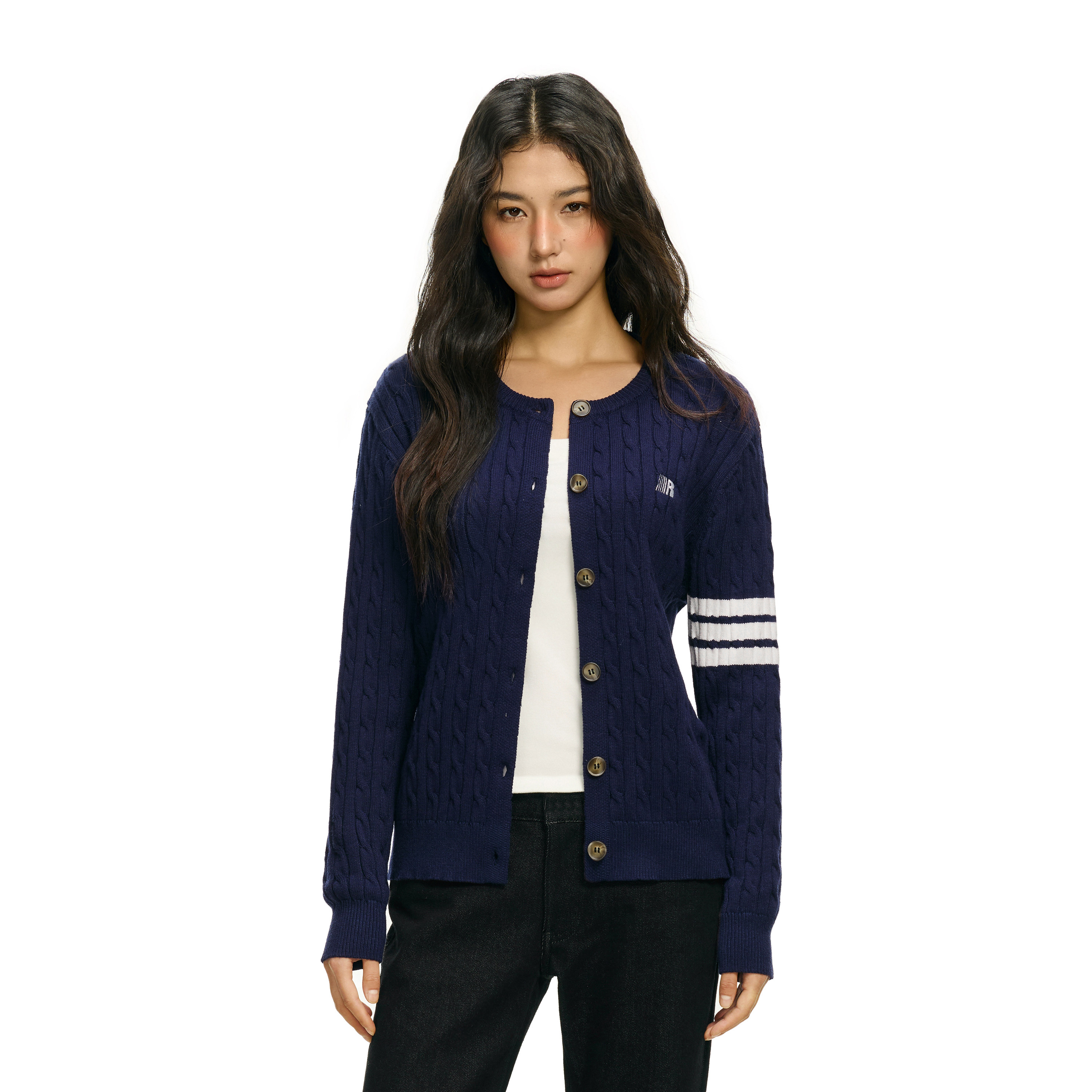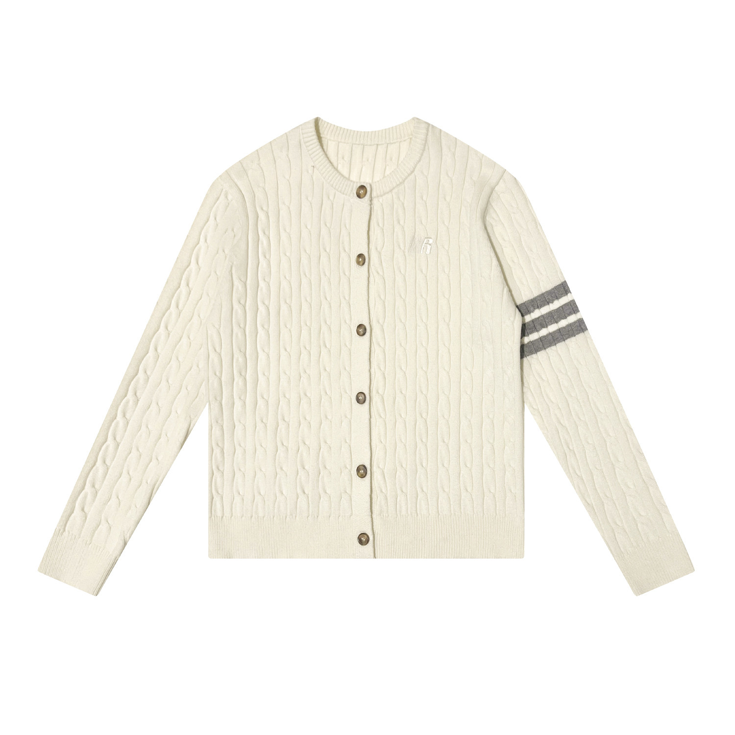 FDR官方店 圆领麻花毛衣学院风纽扣开衫上衣女春季长袖毛衣针织衫