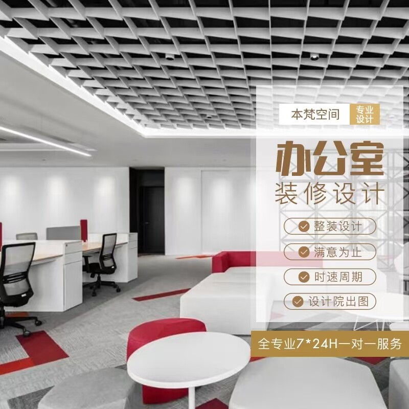 办公室装修设计效果图平面布局图施工图CAD代画办公楼设计办公区