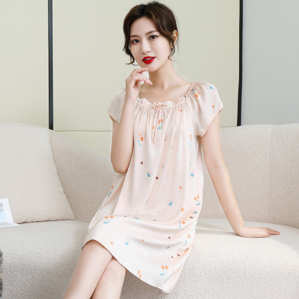 真丝睡衣女夏季冰丝雪纺睡裙薄款甜美丝绸印花薄款大码宽松家居服