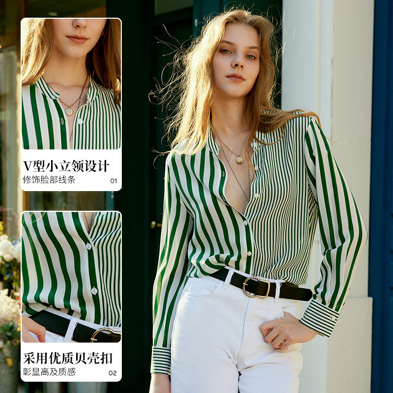 真丝衬衫女2025秋季新款设计感条纹上衣高级感长袖宽松桑蚕丝衬衣