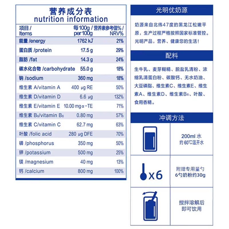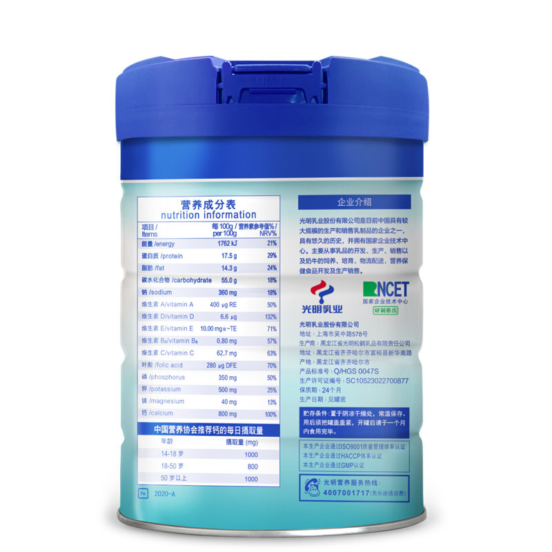 光明中老年高钙牛奶粉800g×2罐