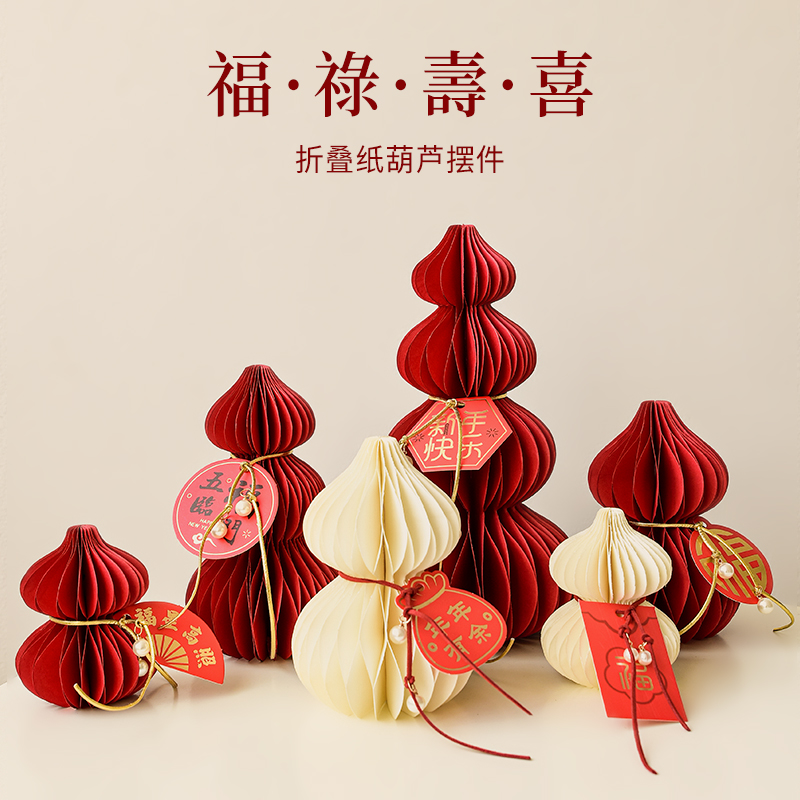 诺琪 2025新年装饰品折叠纸葫芦红色新中式摆件店铺春节家用布置