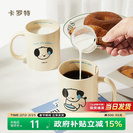 卡罗特陶瓷马克杯小狗卡通水杯早餐牛奶杯子可爱女生男友喝水杯