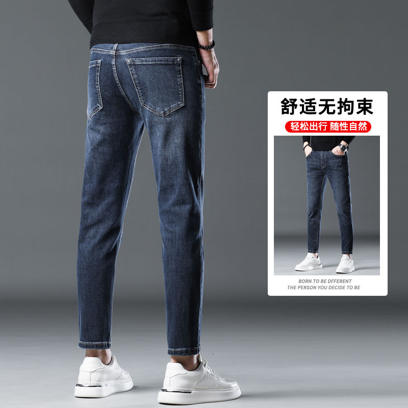 高端九分牛仔裤男加绒加厚2024冬季新款秋冬男士修身小脚休闲裤子