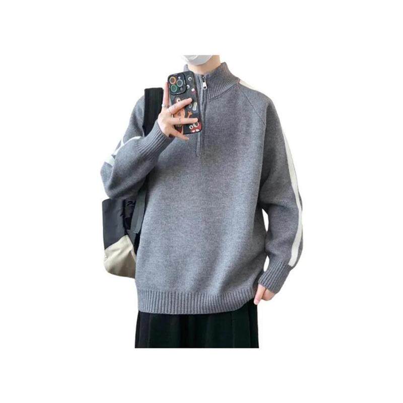 伊锦阁特色服饰店半高领拉链立领毛衣男秋冬加厚中年针织衫男装