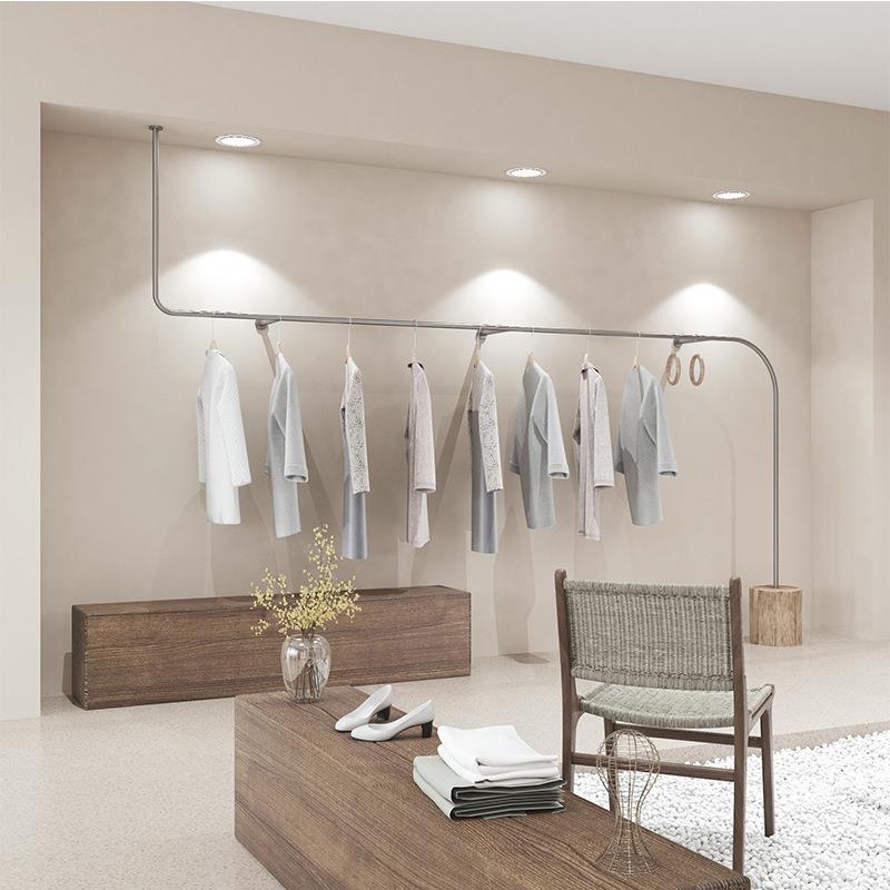 服装店展示上墙挂衣架不锈钢拉丝银色货架女装店挂衣杆网红陈列架
