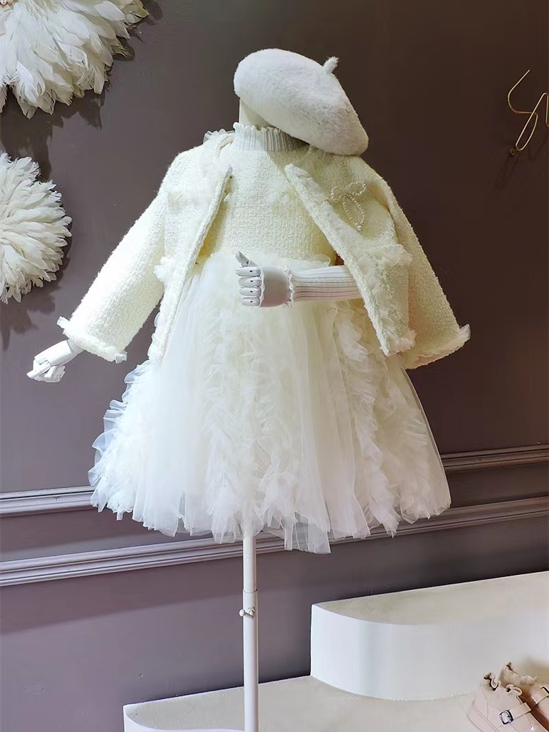 女童套装裙秋季2025新款儿童洋气时尚小香风外套背心蓬蓬裙两件套