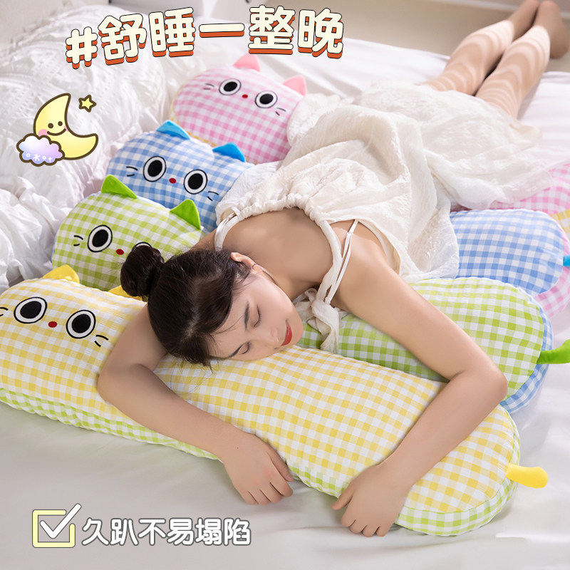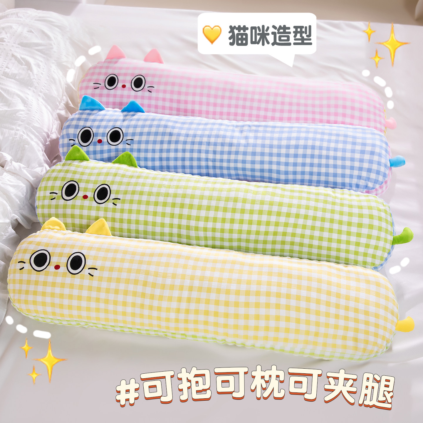 可爱格子猫长条抱枕女生睡觉长条夹腿侧睡专用卧室枕头床上靠枕