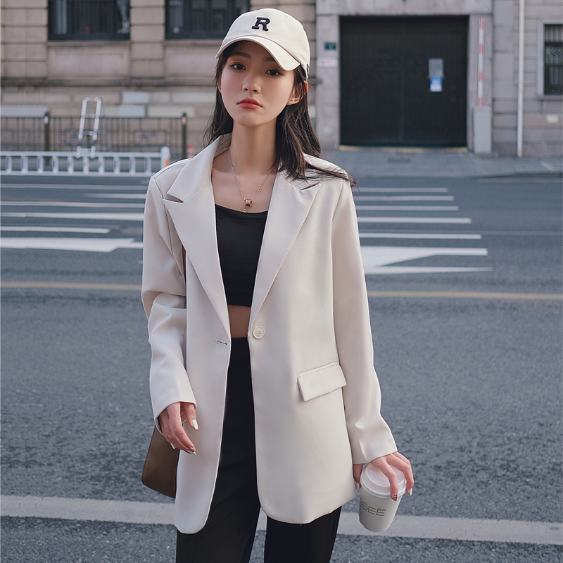 小个子网红西装外套女春秋宽松显瘦休闲气质米白色一粒扣西服洋气