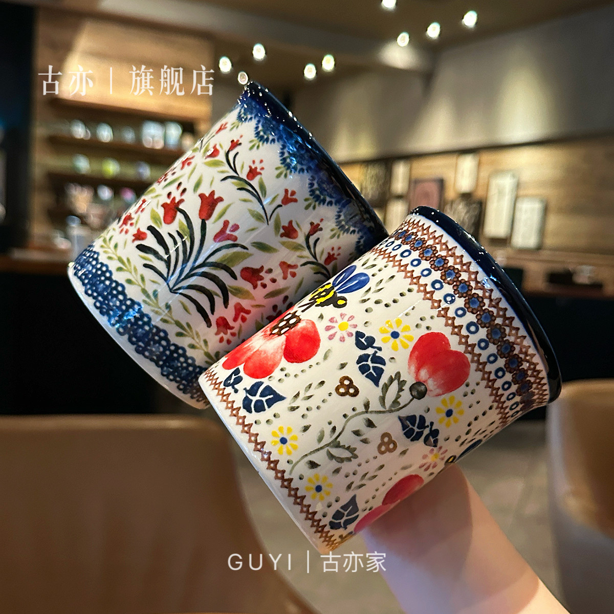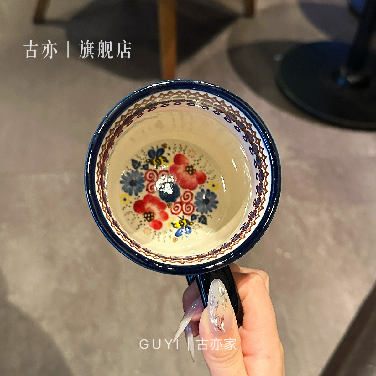 【法式小红花马克杯】波兰陶瓷杯咖啡杯情侣杯子复古早餐杯茶杯