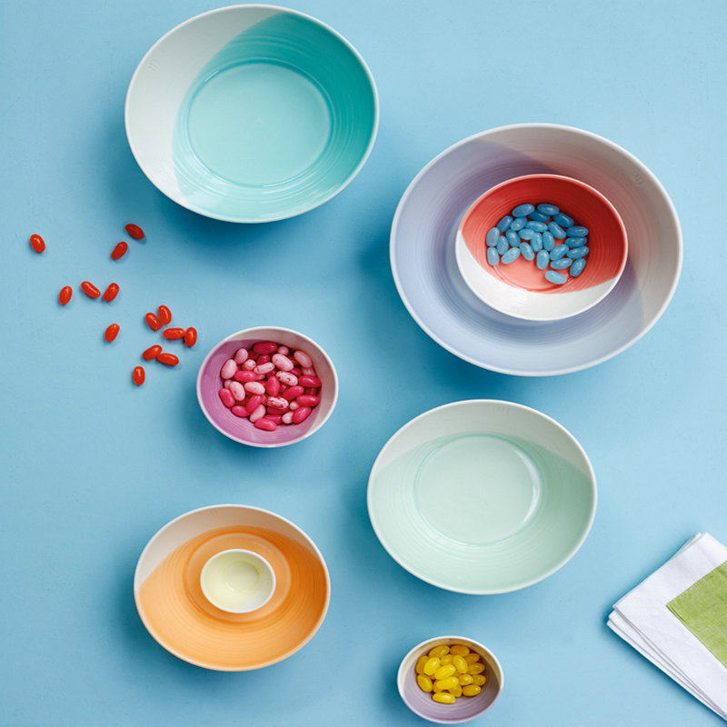 某大牌英国外贸原单尾货盘碗杯糖果色中式家庭餐具瓷器套装釉下彩