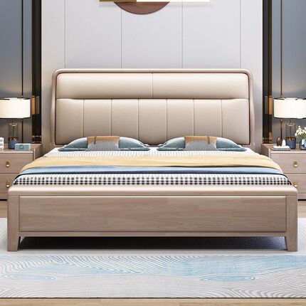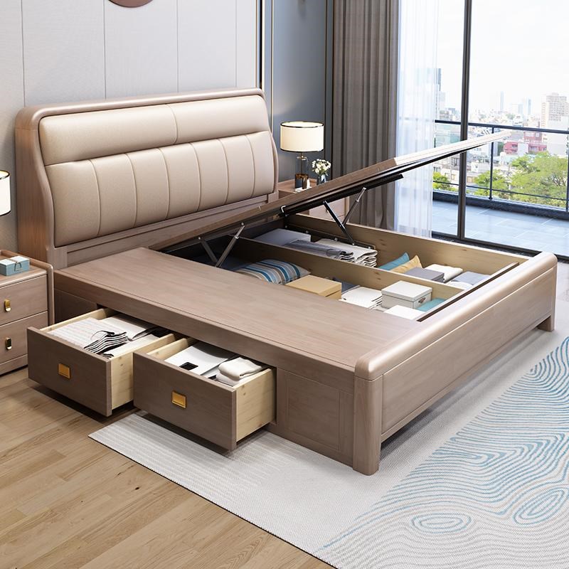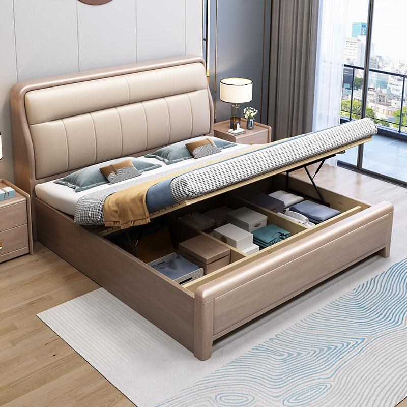 实木床1.8米双人床北欧现代简约皮靠软包1.5主卧气压抽屉储物婚床