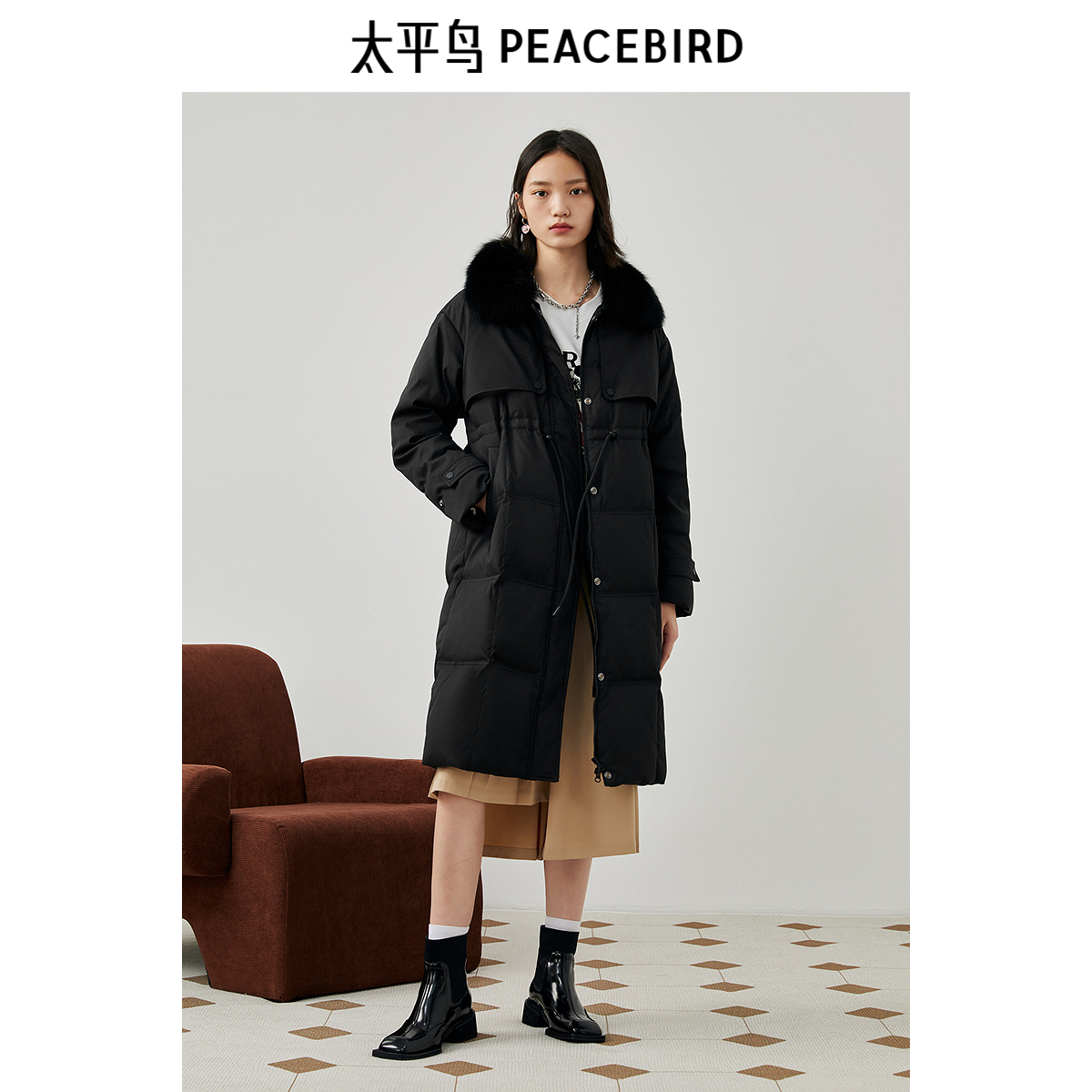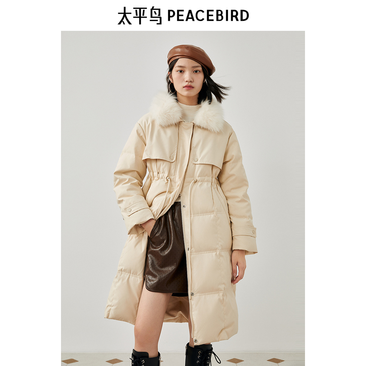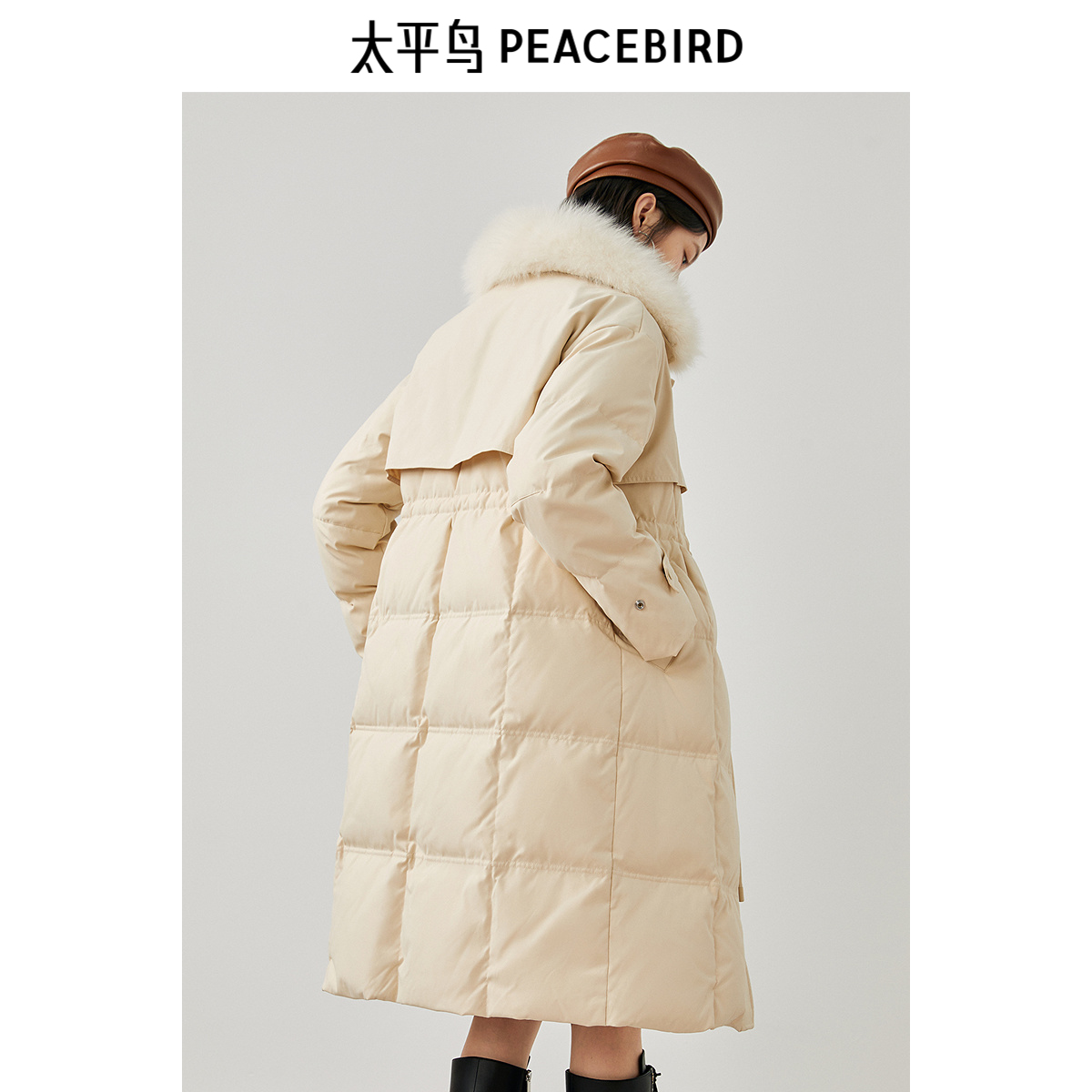 太平鸟中长款毛领羽绒服女冬新款小众气质派克服白鸭绒面包服