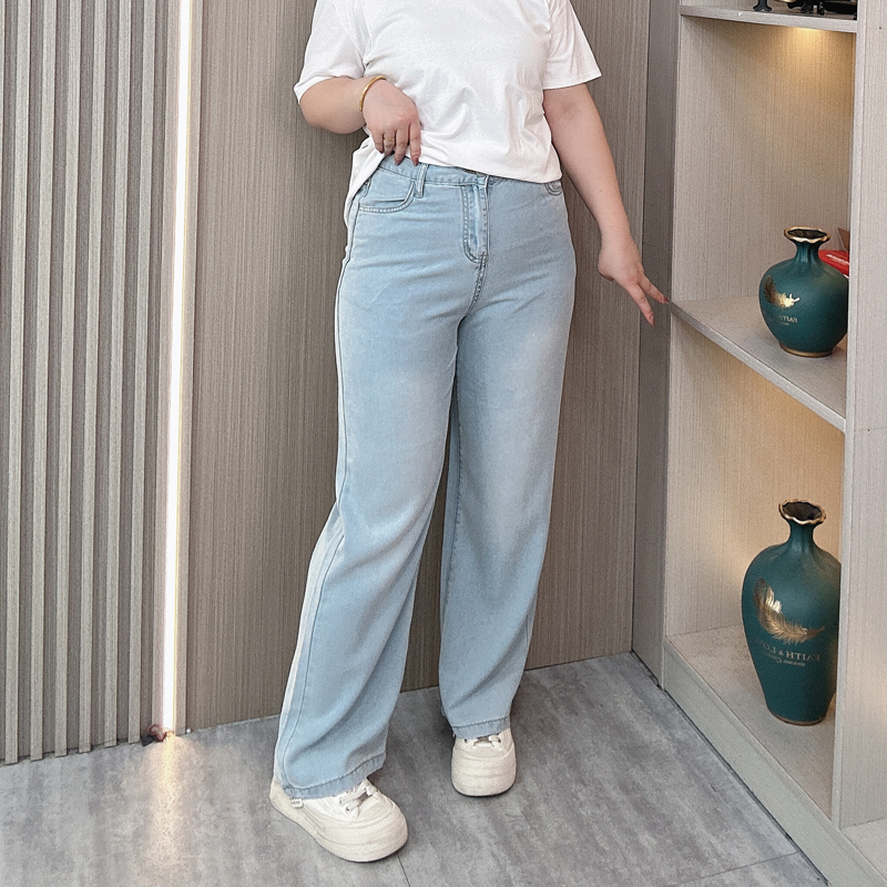 天丝直筒牛仔裤女夏季新款大码女装胖mm宽松显瘦垂感休闲阔腿裤子
