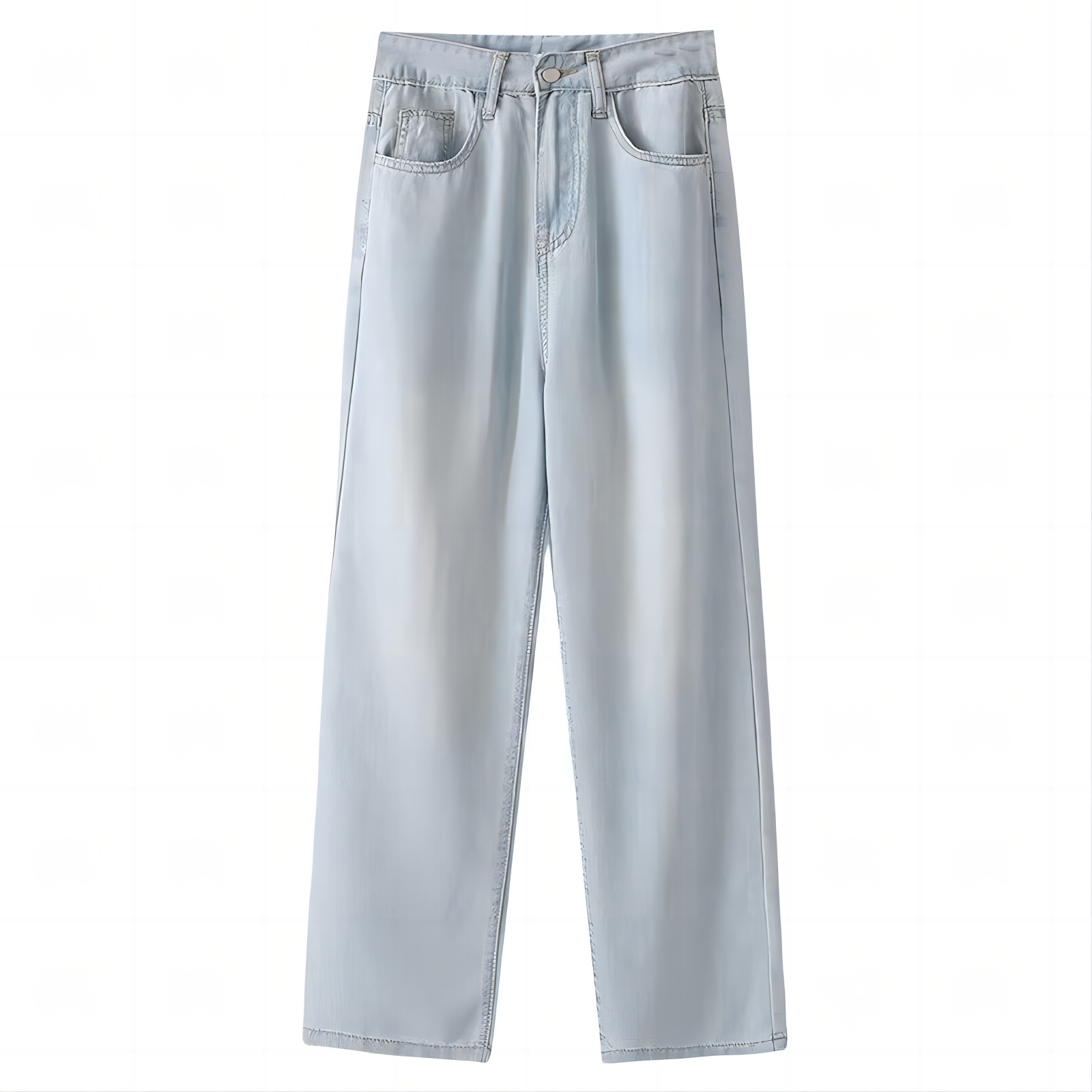 天丝牛仔裤女薄款垂感阔腿长裤子
