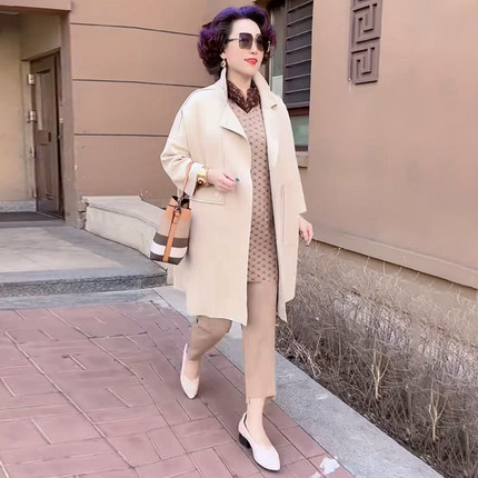 欧洲站时尚百搭中长款空气棉风衣女2025春季新款休闲翻领纯色外套