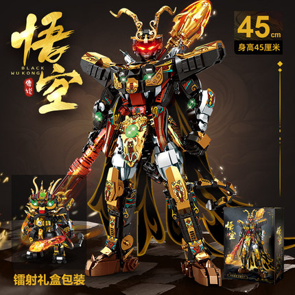 新款黑色孙悟空机甲机器人积木拼装男孩益智玩具齐天大圣生日礼物