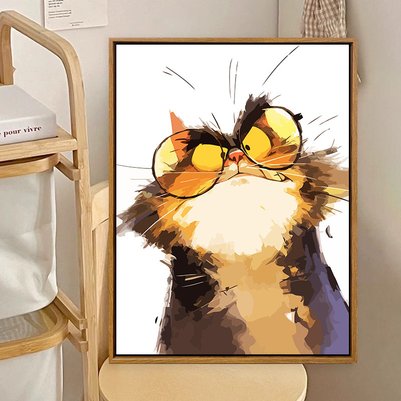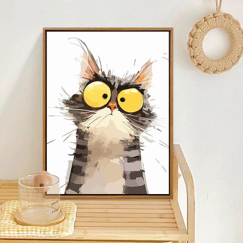 可爱搞怪猫咪diy数字油画儿童油画艺术装饰客厅餐厅高级感丙烯画