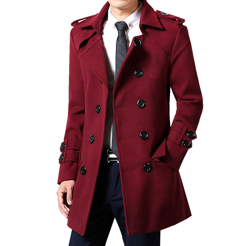 2024秋冬季新款男士风衣修身韩版潮大衣毛呢双排扣青年男装厚外套