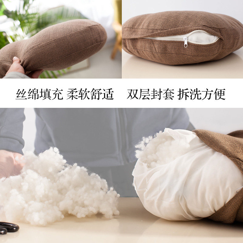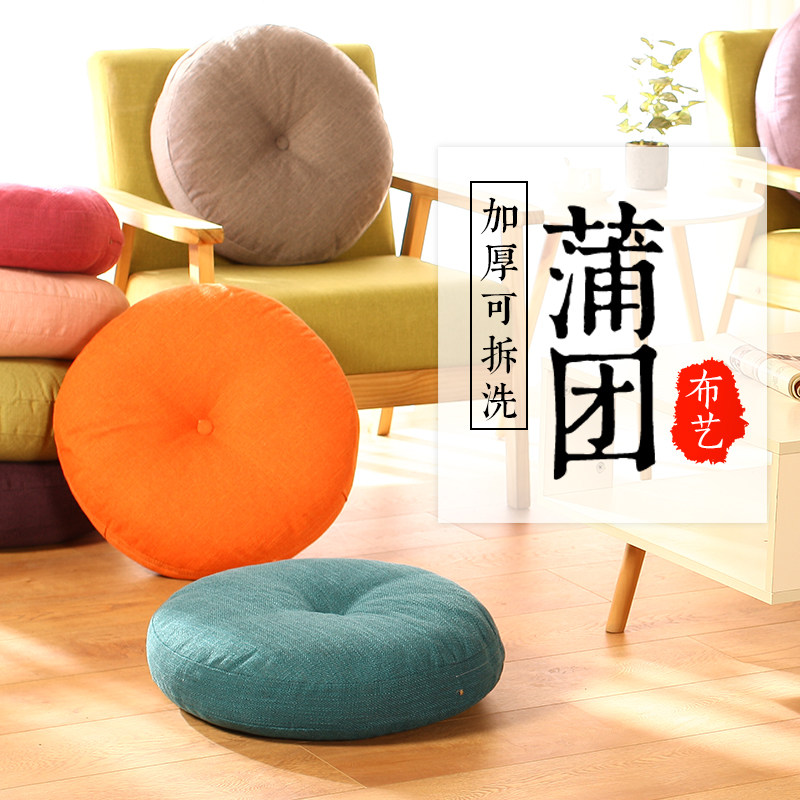 亚麻布艺客厅坐垫可拆洗加厚蒲团打坐家用圆形榻榻米飘窗阳台地板