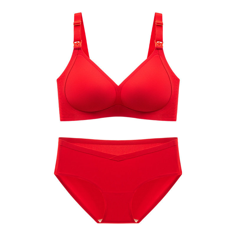 本命年红色孕妇哺乳内衣内裤套装孕期专用喂奶文胸聚拢防下垂胸罩