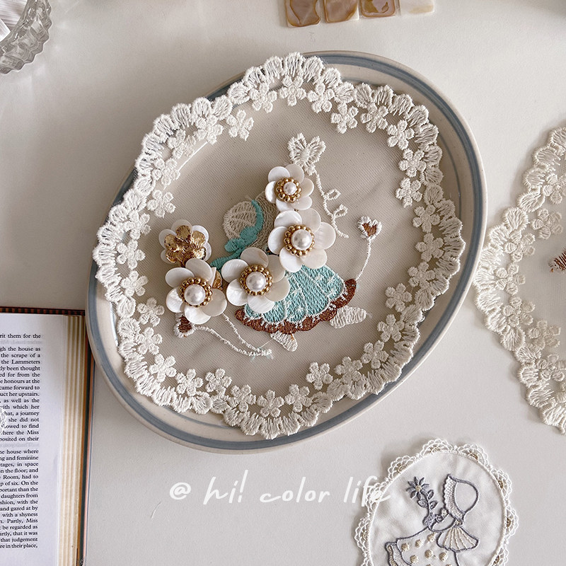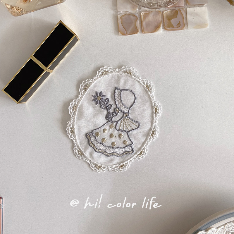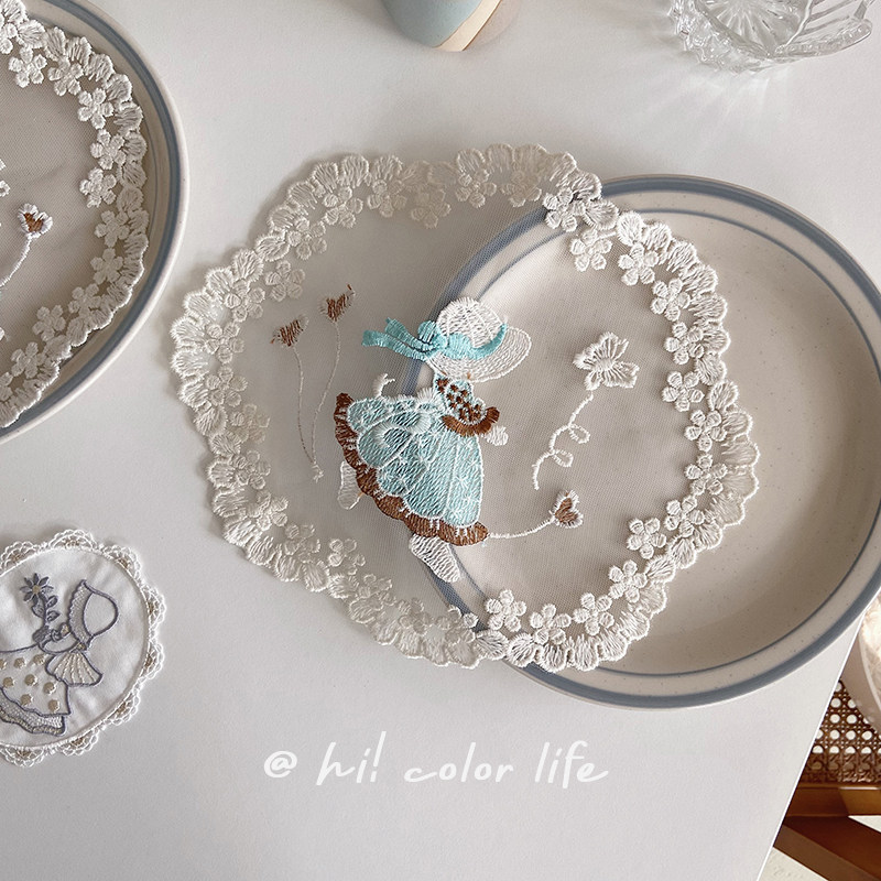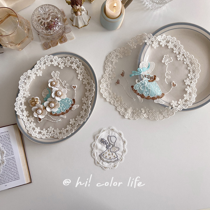 法式ins风复古草帽女孩蕾丝盖布碎花椭圆形杯垫拍摄道具餐桌餐垫