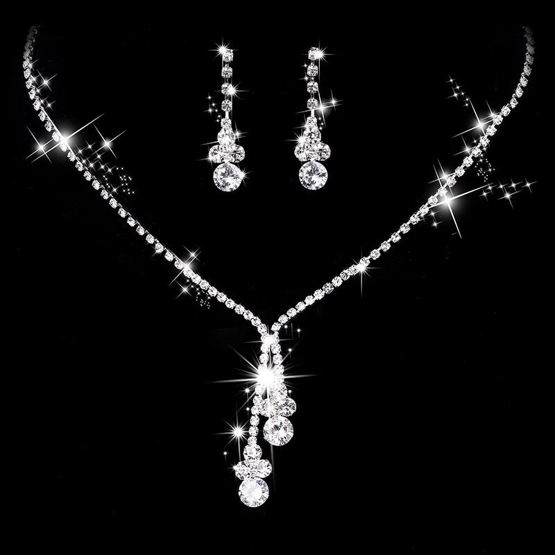 新娘饰品精致超闪水晶项链耳环套装结婚纱礼服配饰晚宴会时尚耳饰