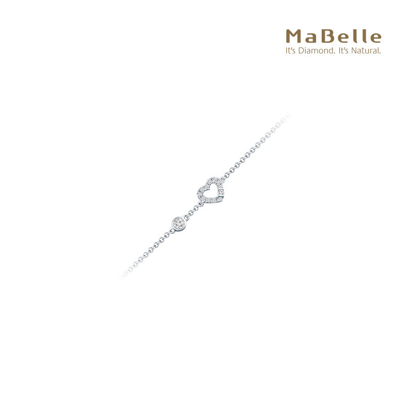 MaBelle/玛贝尔星月浪漫系列 18K白/玫瑰金守护心形钻石手链 温柔