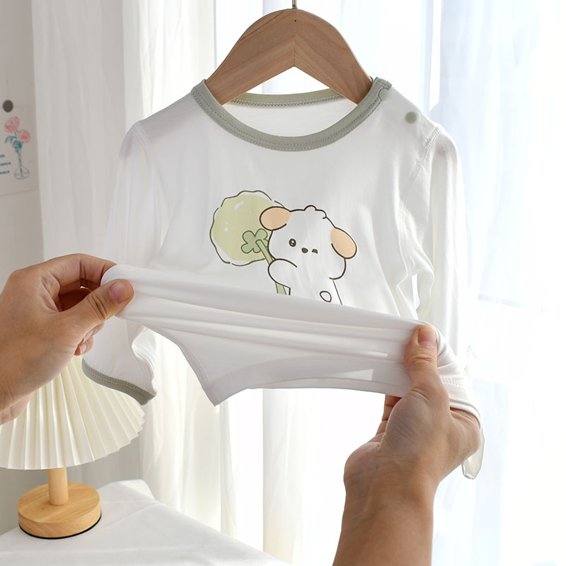 宝宝上衣薄款长袖莫代尔t恤打底衫一岁空调服男女小月龄婴儿睡衣