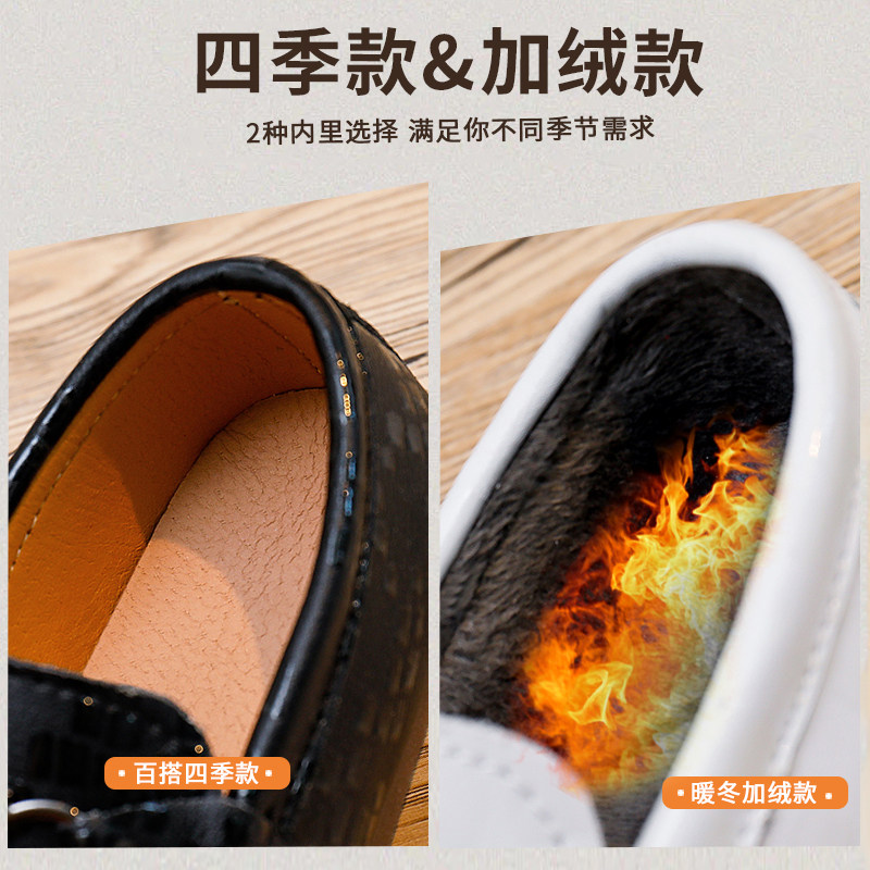 儿童豆豆鞋春秋男童黑色皮鞋真皮软底配西装幼儿园男孩钢琴演出鞋