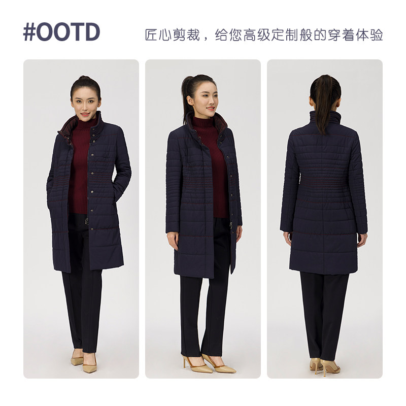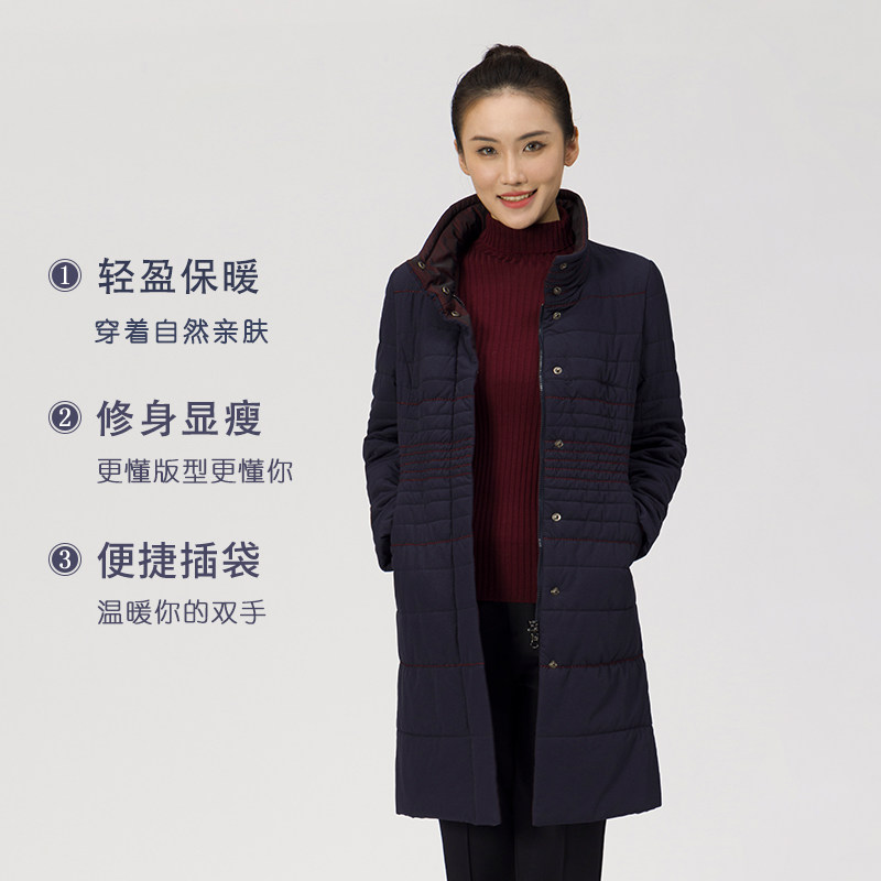 靓诺冬季棉服藏蓝色大码宽松中长款气质修身立领高级外套LM17454A