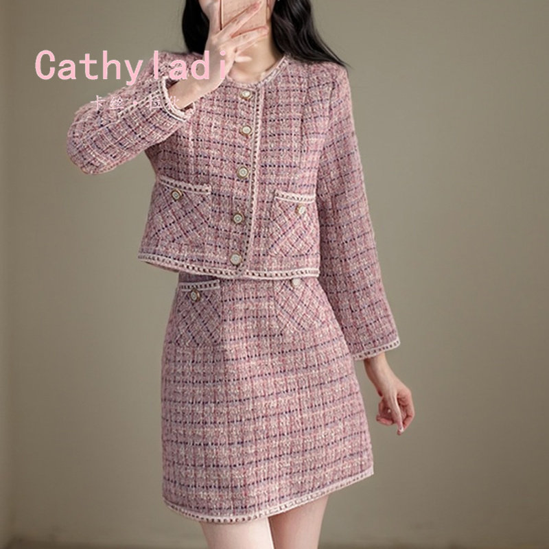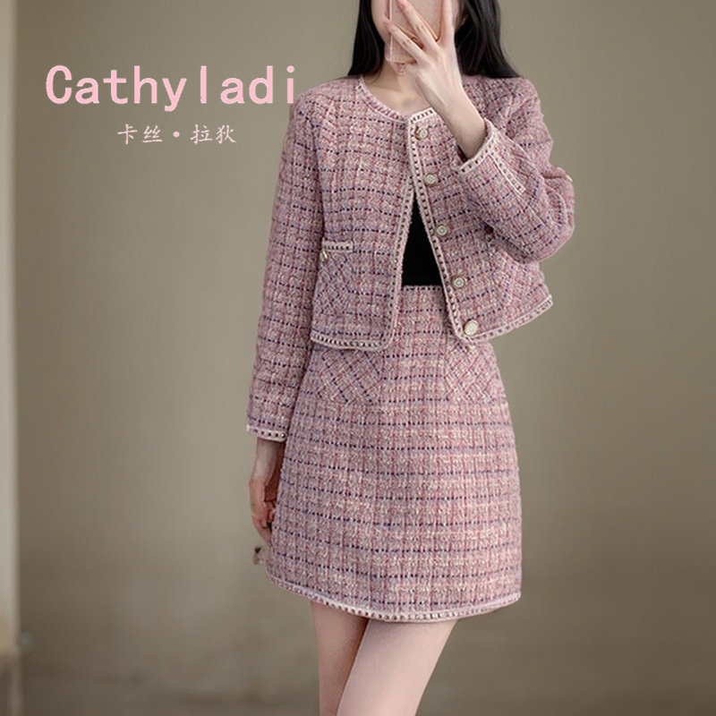 CATHYLADI法式小香风套装2025年秋冬新款减龄外套半身裙两件套女