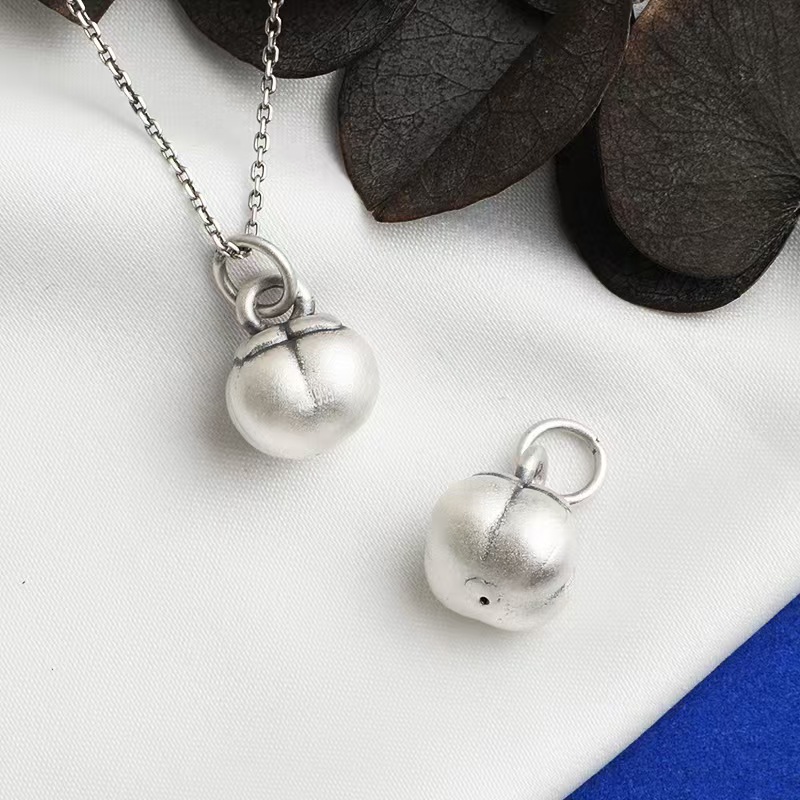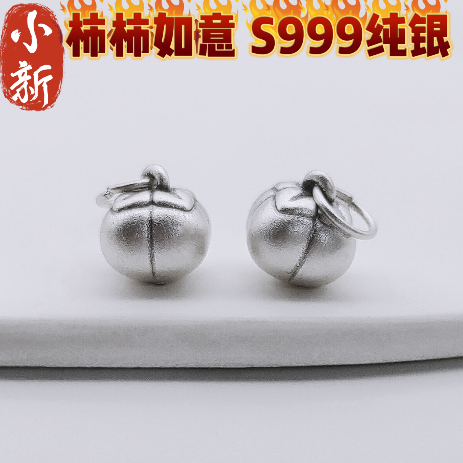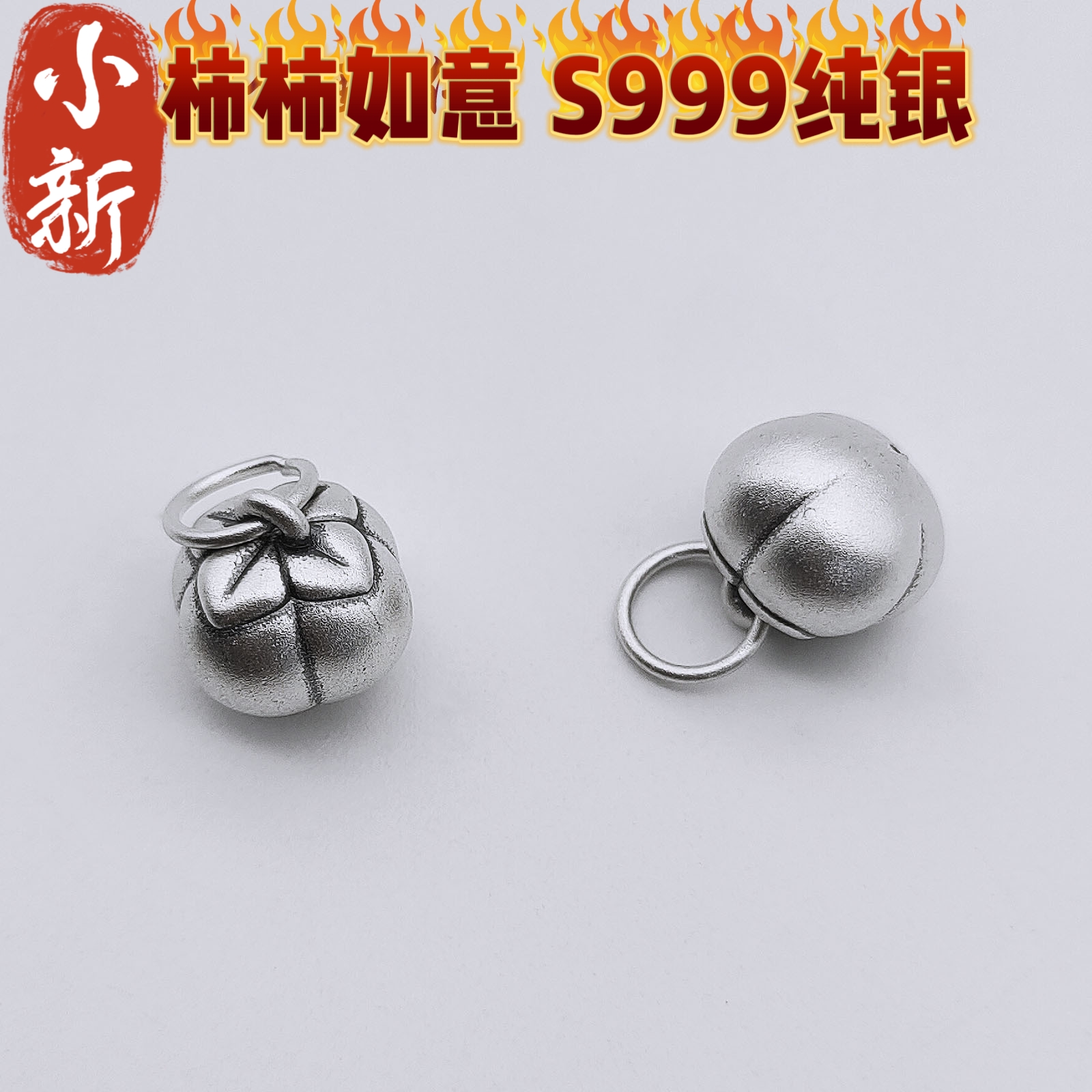 【爆款】攒单S999足银柿子吊坠diy编绳手串手链项链3D硬银配件