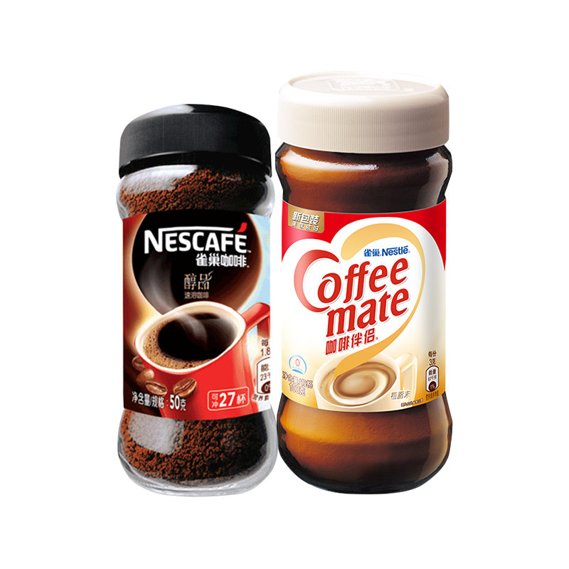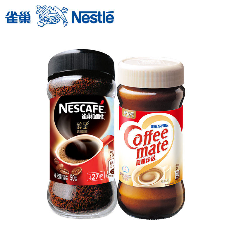 包邮Nestle/雀巢醇品速溶黑咖啡粉50g瓶装加雀巢伴侣100g组合套餐