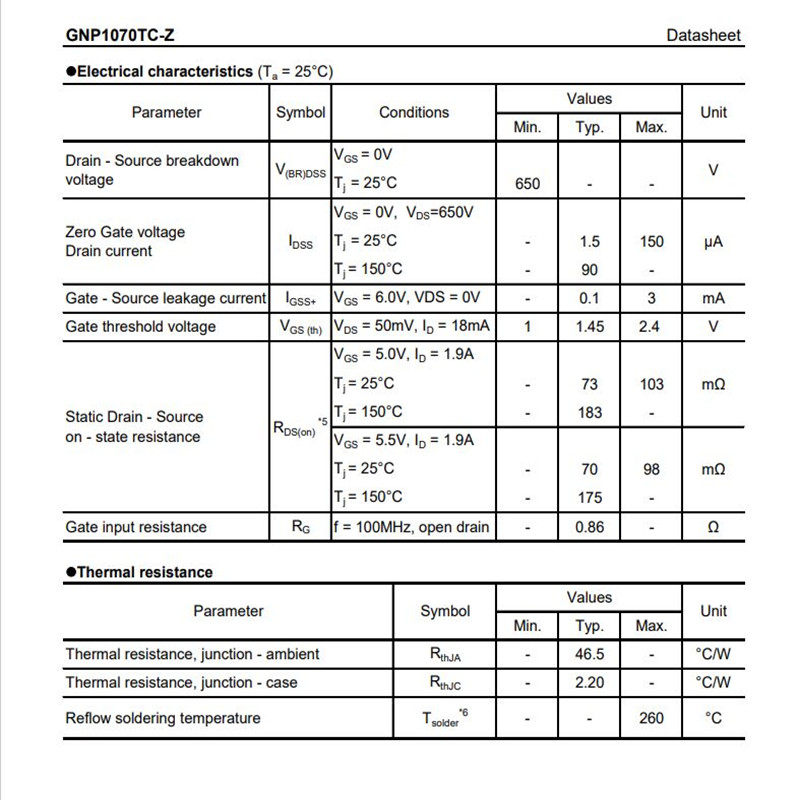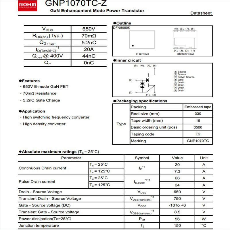 诚广鑫 GNP1070TC-ZE2 GaNFET 氮化镓晶体管 N 通道 650 V 20A