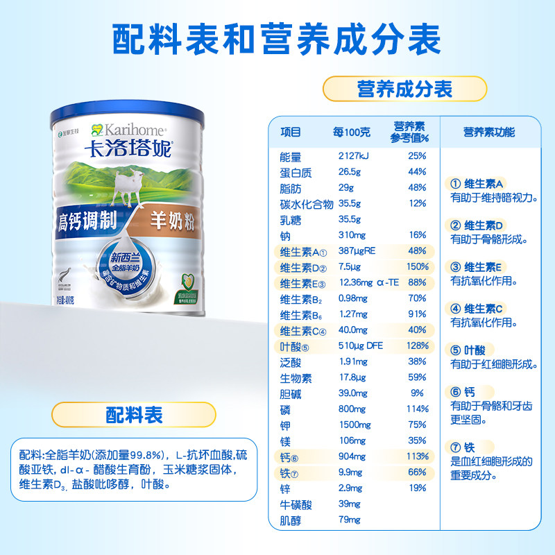 奶粉礼盒装卡洛塔妮羊奶粉成人中老年学生奶粉高钙多维