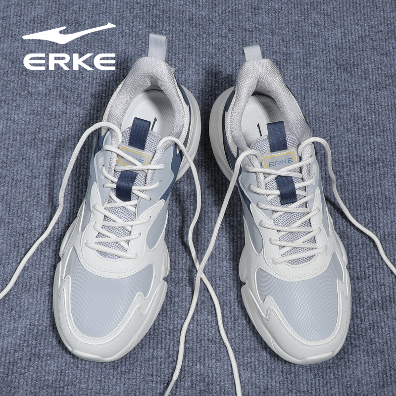 鸿星尔克男鞋秋季运动鞋男皮面防水厚底休闲鞋轻便防滑跑步鞋男款